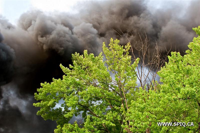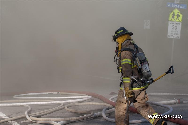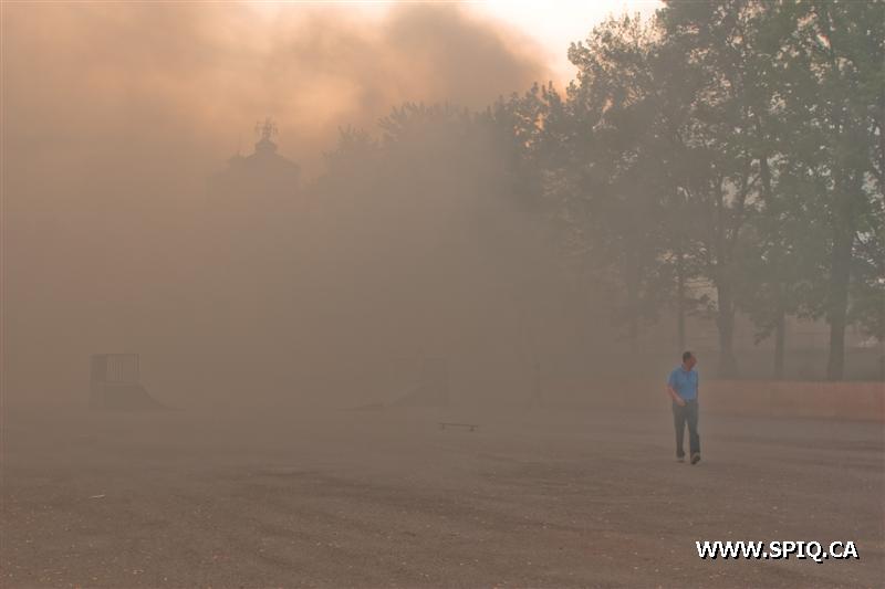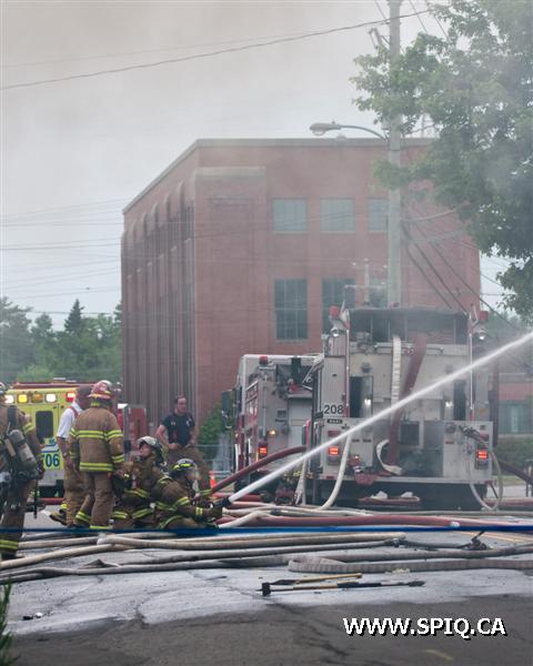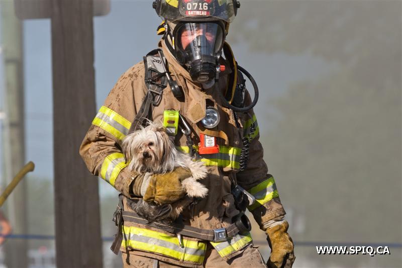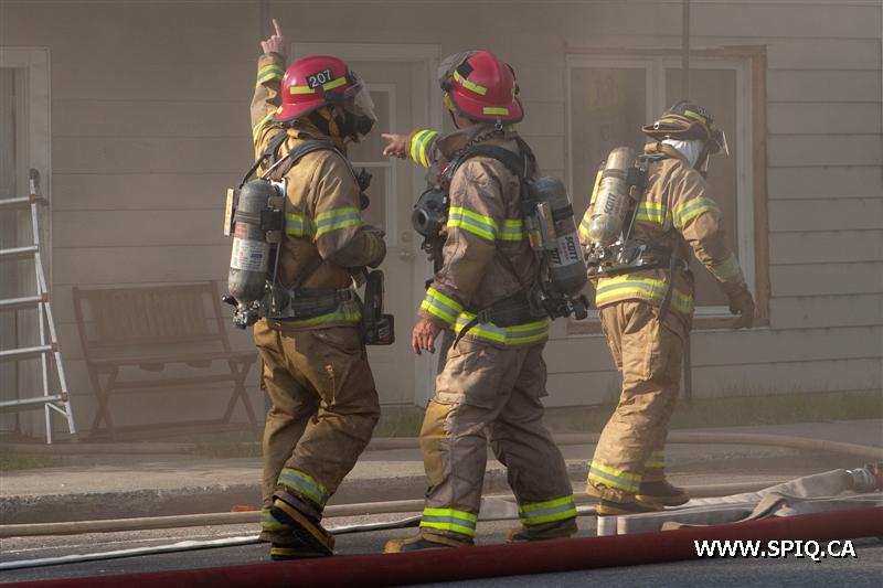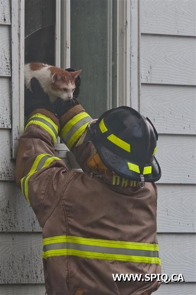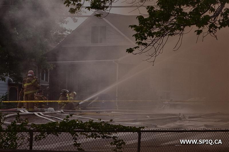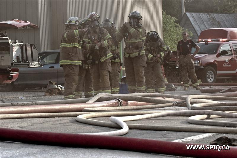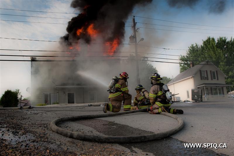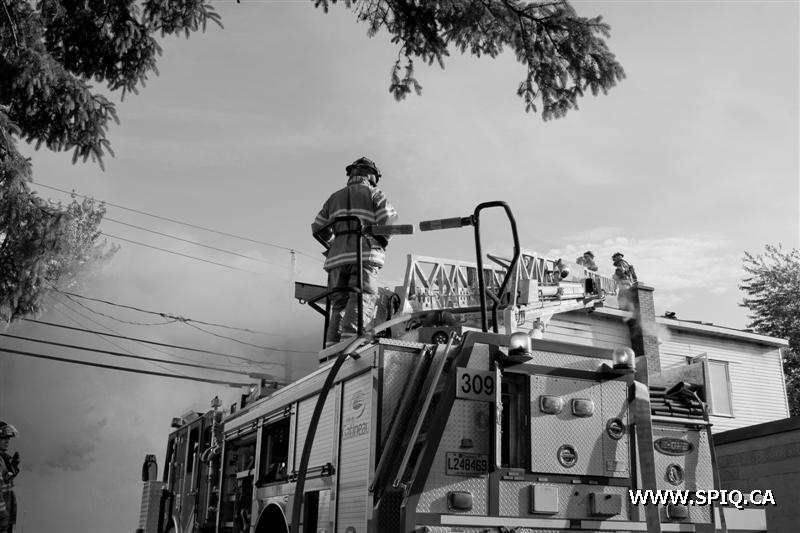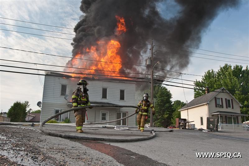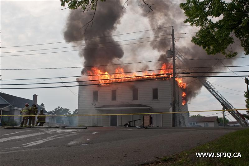 Il sort sa caméra et prend des photos du travail des pompiers: ses photos démontrent bien la progression des flammes dans la bâtisse qui sera finalement une perte totale.