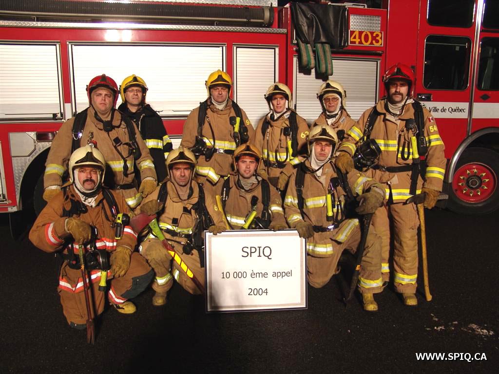 L'impossible s'est produit!!! C'est maintenant officiel: le peloton 3 remportera le 10,000ème appel de 2004. Après un arrêt à la caserne 15 qui espère toujours mériter la palme à nouveau, retour pour une autre photo du division... le bon, cette fois-ci, Pierre Verrreault ( qui s'empressa d'appeller Réjean Fortin pour lui dire qu'il était "flushé", mais nous avons été gentils et avons gardé sa photo).