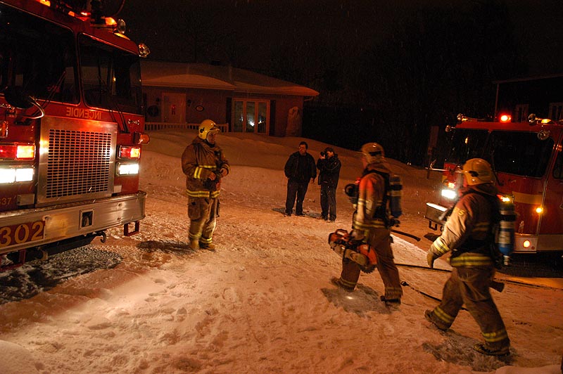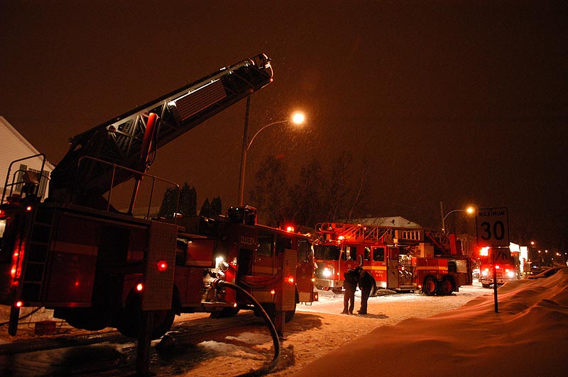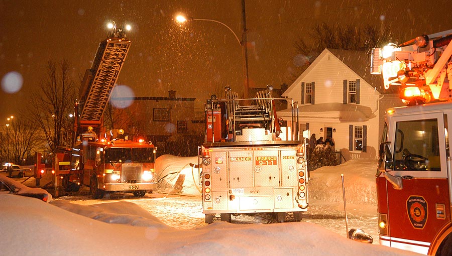 Feu éclaté au sous-sol d'un édifice résidentiel de deux étages. L'appel initial mentionnait du feu au sous-sol et beaucoup de fumée, des informations supplémentaires mentionnaient que le feu se propageait au rez-de-chaussée, ensuite au second étage. Étant donné les infos, le 113 demande le 1105 puis ensuite la 2e alarme, avant l'arrivée des premiers pompiers sur les lieux. Le feu est éteint en peu de temps et sa propagation demeure limitée.