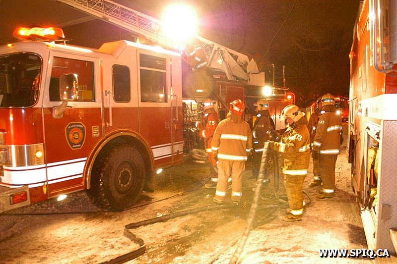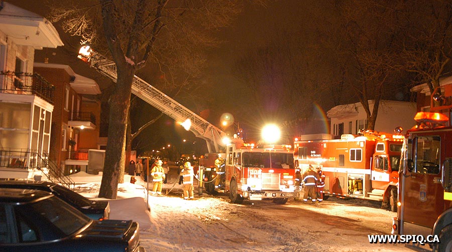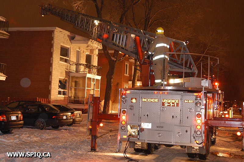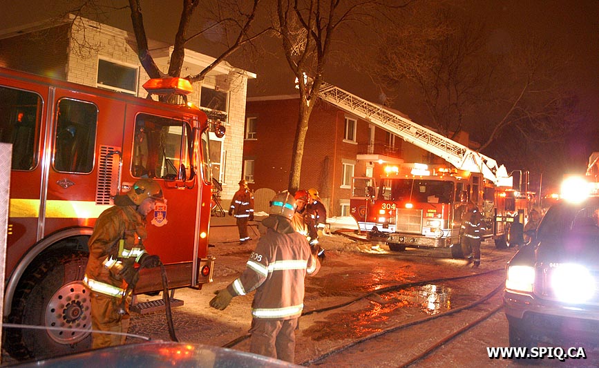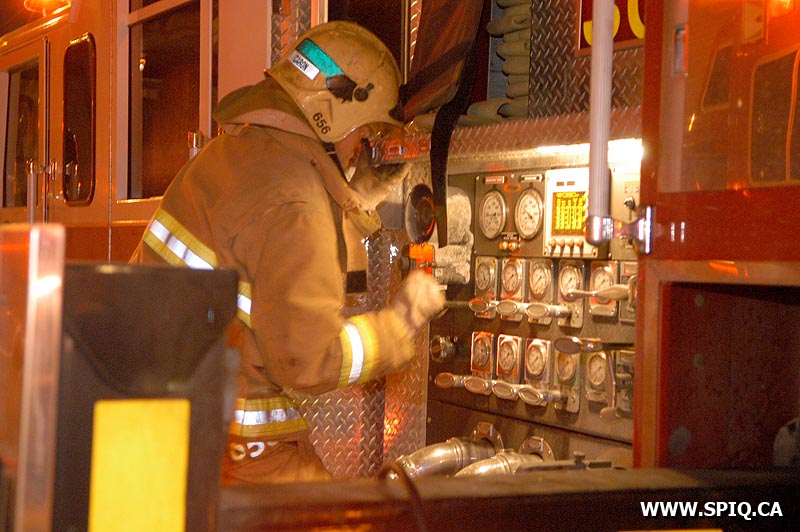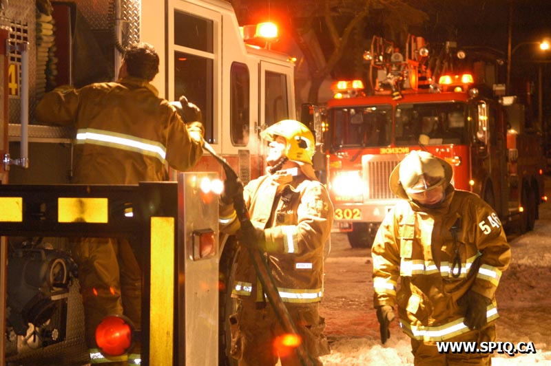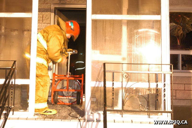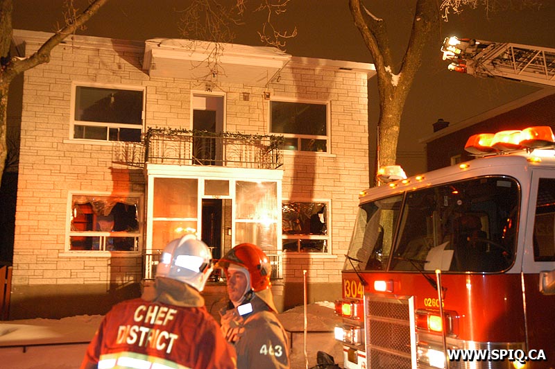 L'appel initial mentionne qu'il y a le feu au rez-de-chaussée dans un édifice résidentiel de deux étages. Avec la nature des détails fournis, le 113 demande le 1102. Sur place on constate de la fumée, le 1105 est demandé, puis le feu éclaté est découvert, la 2e alarme est demandée. L'élément destructeur est contrôlé rapidement.