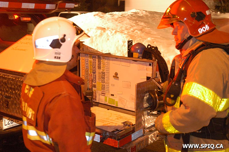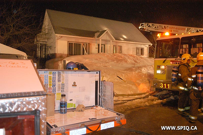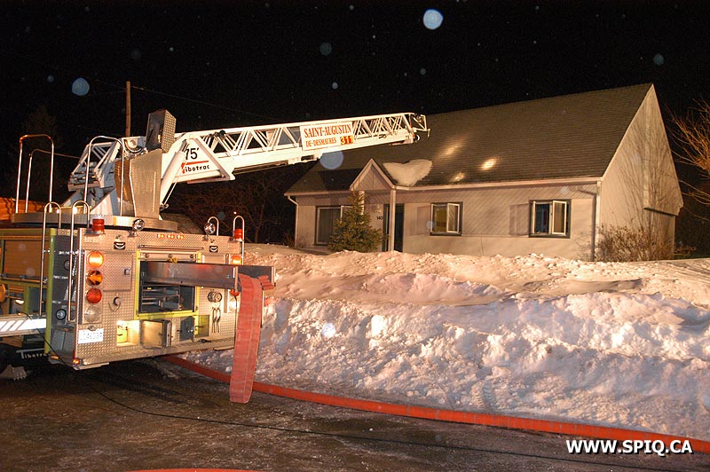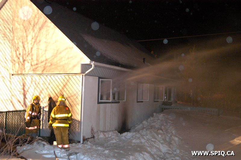 Les occupants d'une maison unifamiliale signalent qu'il y a du feu dans une pièce au sous-sol; les pompiers arrivant sur place confirment un feu éclaté dans la résidence. Le foyer d'incendie est difficile à localiser; la fumée très dense et des difficultés de ventilation en font un feu assez coriace. Il était aussi coriace à trouver pour notre reporter qui a mal compris en allant sur la rue "de Lucerne" à quelques kilomètres de là!!!