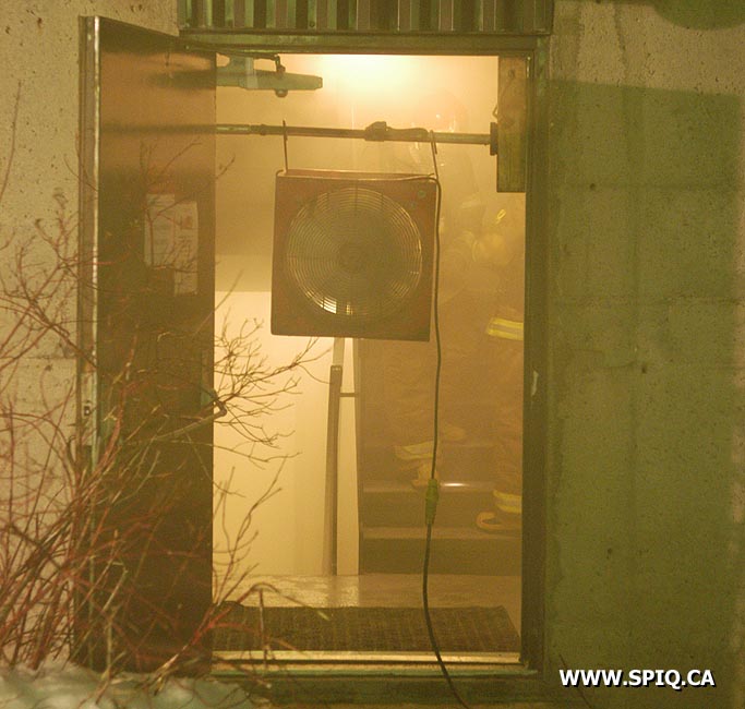 Édifice de 58 logements: plusieurs étages se remplissent de fumée, d'abord par les couloirs, ensuite par le système de ventilation. Il y a tellement de fumée au sous-sol que les pompiers ont du mal à trouver le foyer d'incendie, qui est rapidement éteint après avoir été découvert. L'intervention se transforme ensuite en une importante opération de ventilation.