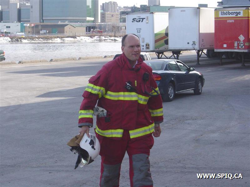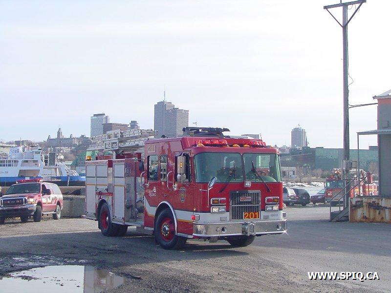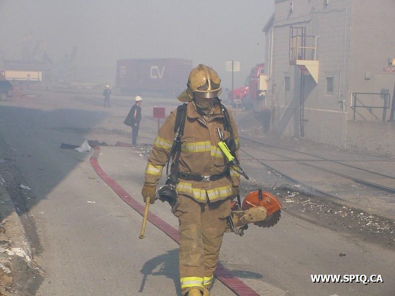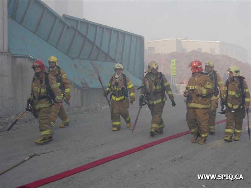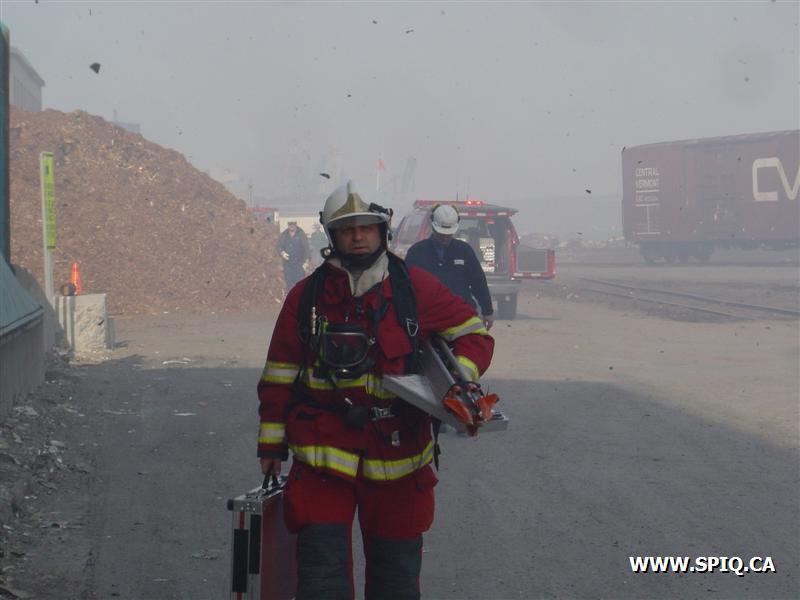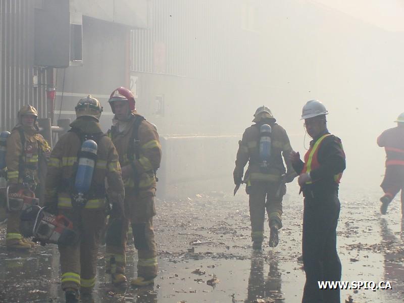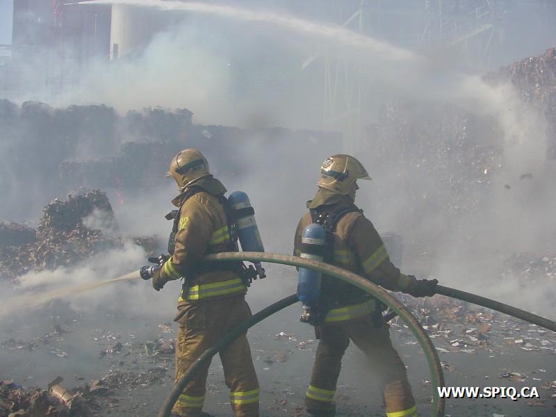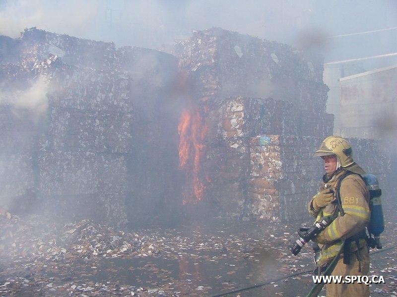 Feu dans des centaines de ballots de papier dans la cour, du côté de la rivière St-Charles, de l'usine Stadacona. À l'arrivée des unités de la caserne 2, la 2ème alarme est donnée. Quelques membres de la brigade de pompiers de l'usine étaient déjà à l'oeuvre, notamment avec un jet déluge du haut d'une tour.