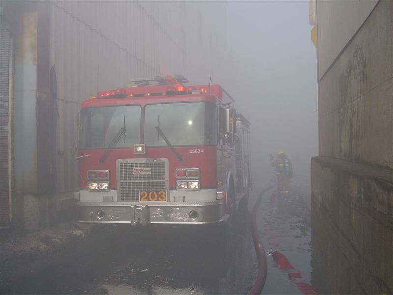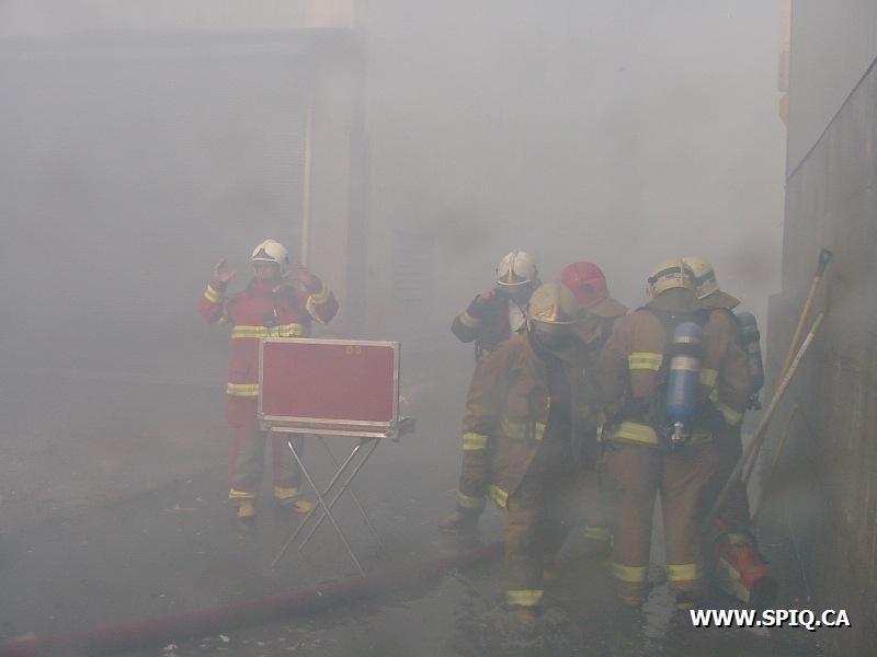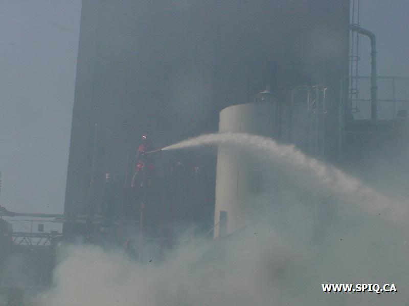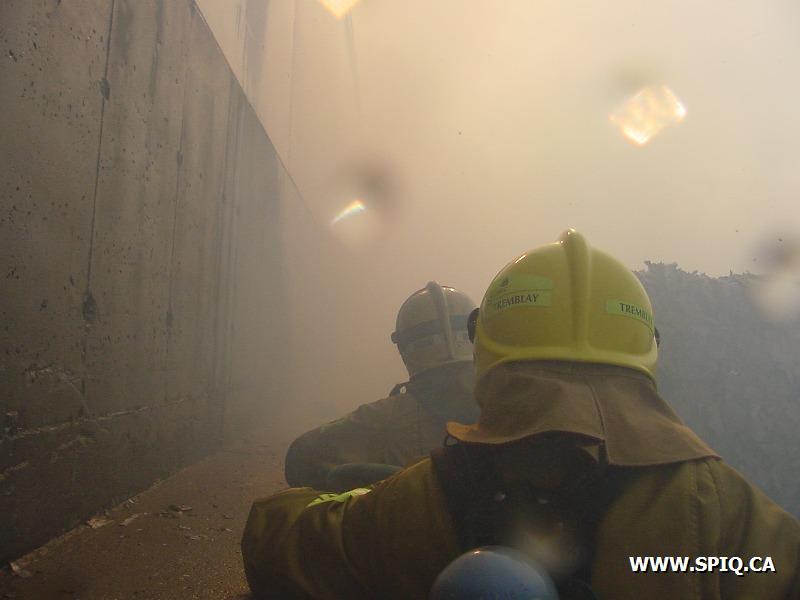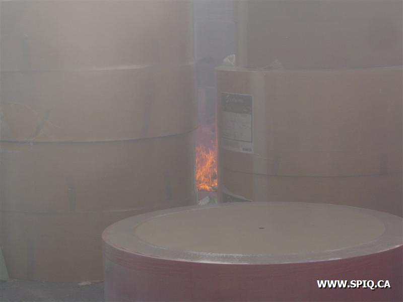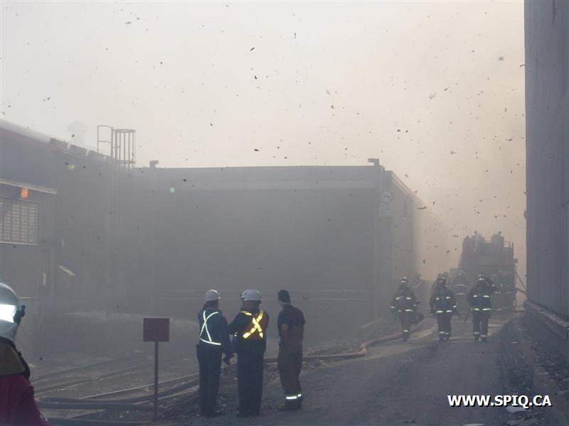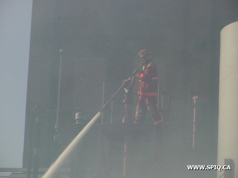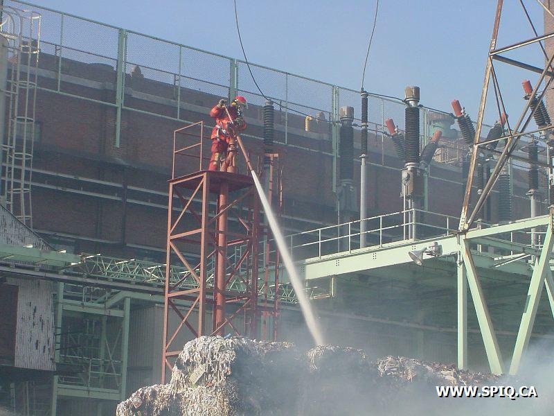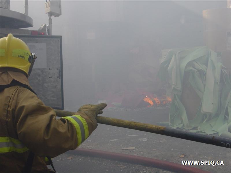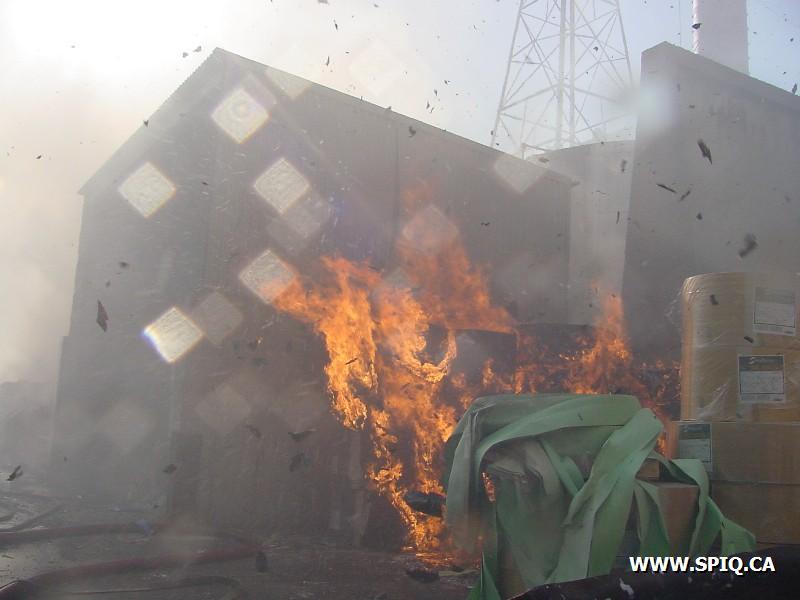 Le vent causé par les flammes entraînait les étincelles dans d'autres ballots de papier et y mettaient le feu. Il a fallu faire vite pour diriger le plus grand nombre de jets possible sur les centaines de ballots entreposés dans la cour et empêcher que le feu ne se communique à des bâtiments de l'usine.