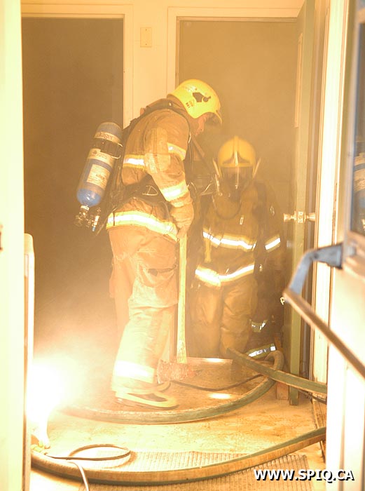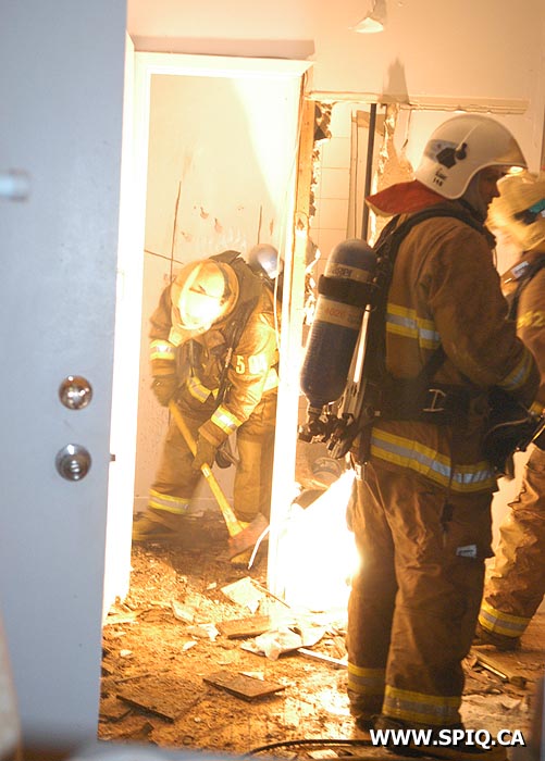 L'appel reçu signale un feu dans une boîte électrique au sous-sol, les occupants sont en train de commencé l'évacuation. Les premières équipes arrivées sur les lieux confirment la situation et attaquent rapidement le feu, situé dans une maison à logements attachée de part et d'autre, la première d'une rangée de constructions similaires. Toutefois, comme des vérifications de propagation montre que le feu s'est infiltré dans la structure, le chef demande une deuxième alarme, puis une troisième peu après pour les mêmes raisons. L'incendie est demeuré assez discret, se cachant dans les murs et planchers autour du foyer initial, sans faire beaucoup de fumée, mais a requis beaucoup de travail de recherche et de déblai pour le contrôler. Plusieurs locataires doivent être pris en charge par la Croix-Rouge.