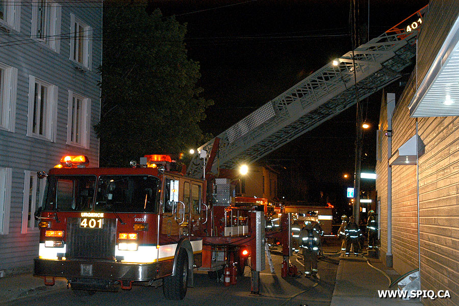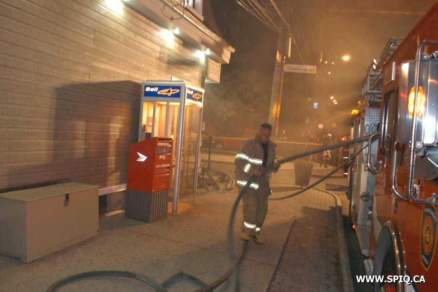 Dépanneur faisant le coin des rues St-Germain et Chateauguay, au pied de la côte de l'Aqueduc dans le quartier St-Sauveur. Une personne sur place signale de la fumée au sous-sol, chose confirmée par les premiers pompiers sur place. Toutefois aucun foyer d'incendie n'est visible au premier abord et la fumée semble surgir du plancher du rez-de-chaussée, envahissant rapidement le commerce. Les recherches s'intensifient et le feu est ensuite découvert dans un mur extérieur à l'arrière de l'édifice; comme il menaçait de se propager dans la structure, la deuxième alarme a été demandée. Il aura heureusement été contrôlé assez rapidement.