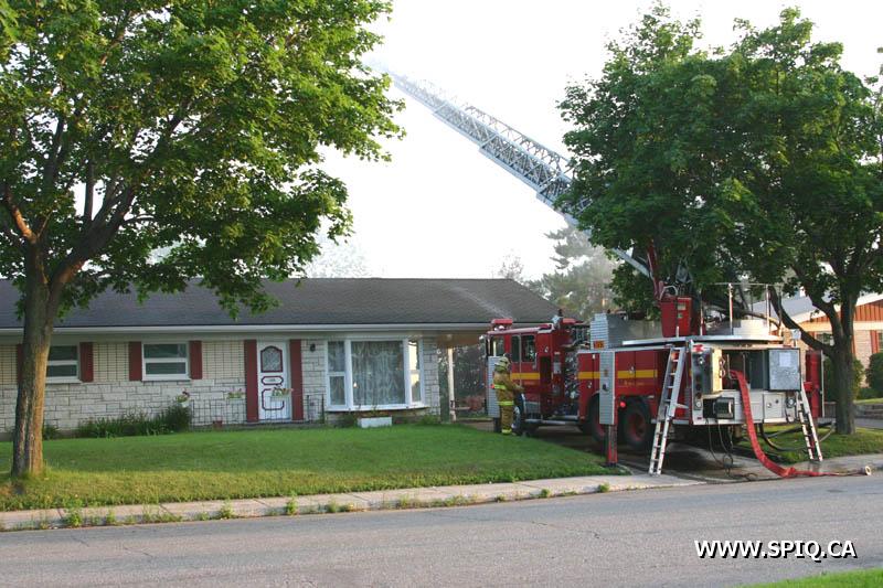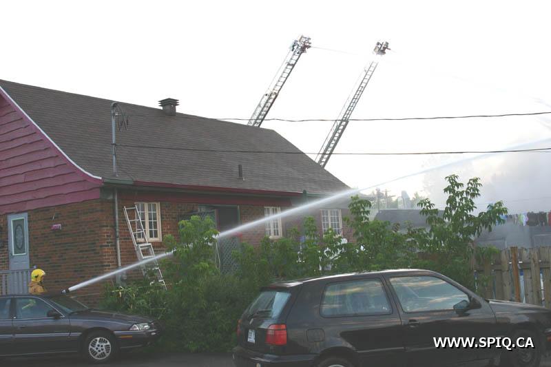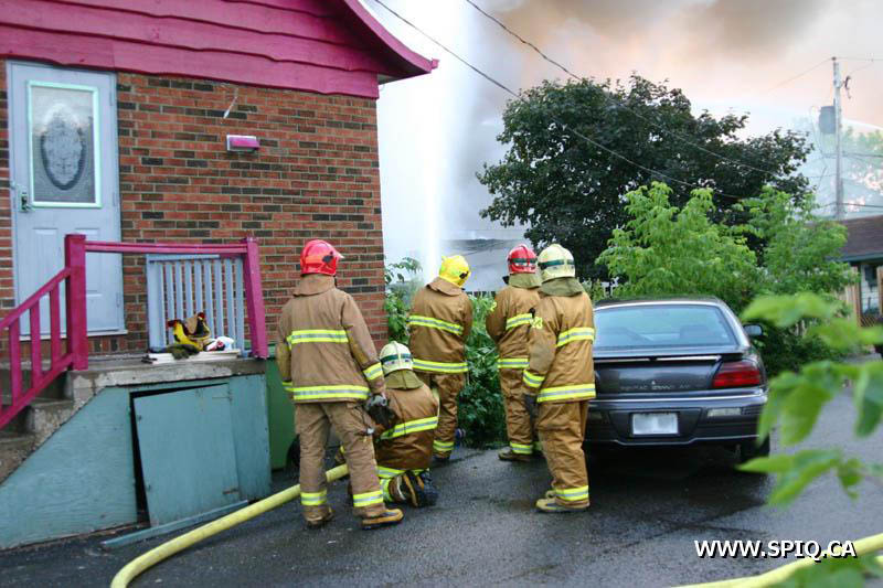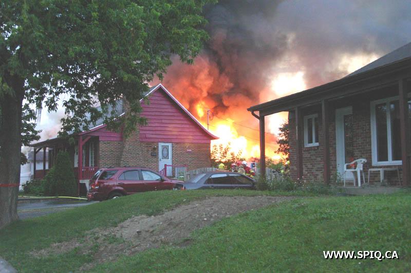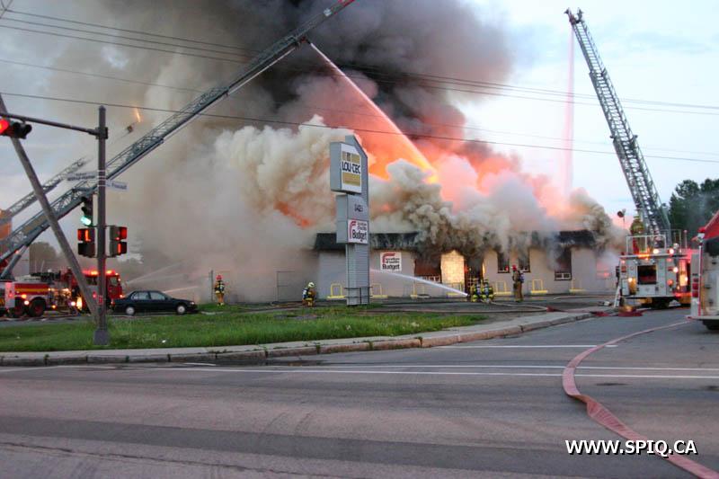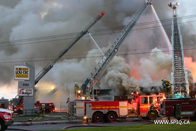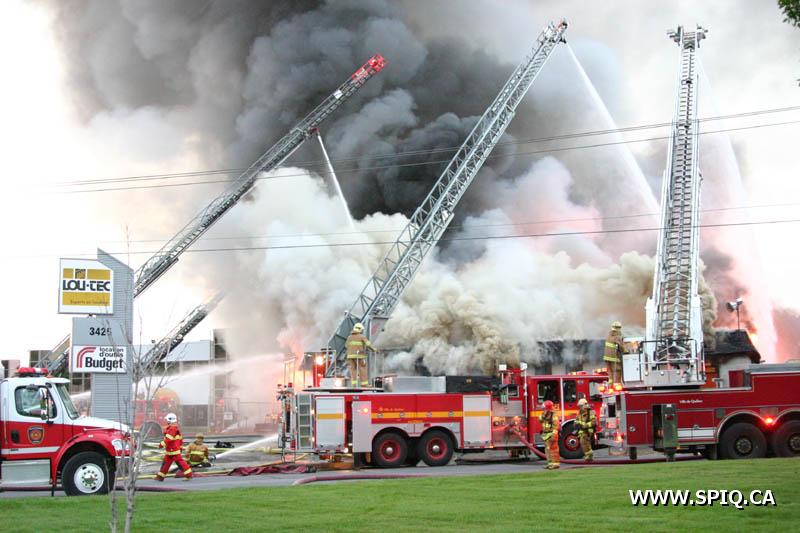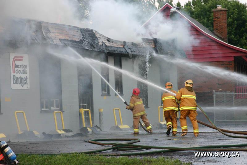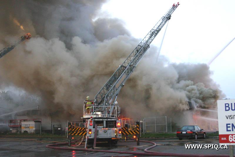 A un certain moment, les flammes étaient tellement intenses, qu'il était interdit pour les pompiers de demeurer devant le batiment pour des raisons de sécurité. En tout cinq jet déluges ont été utilisés, quatre à partir du devant du batiment sur Hamel, et un 5e à partir d'une rue dans le quartier résidentiel en arrière du batiment affecté par l'incendie (dernière photo du reportage). Plusieurs résidences du quartier ont du etre évacuées.