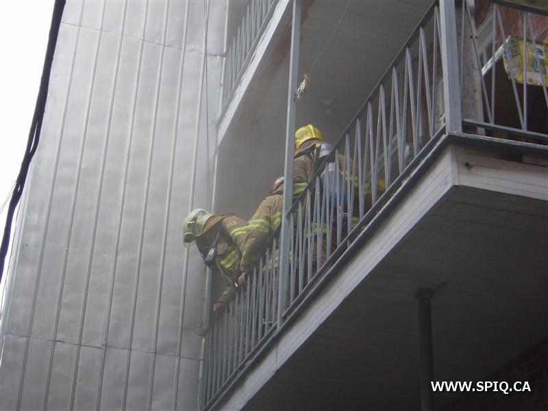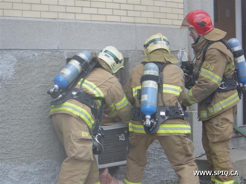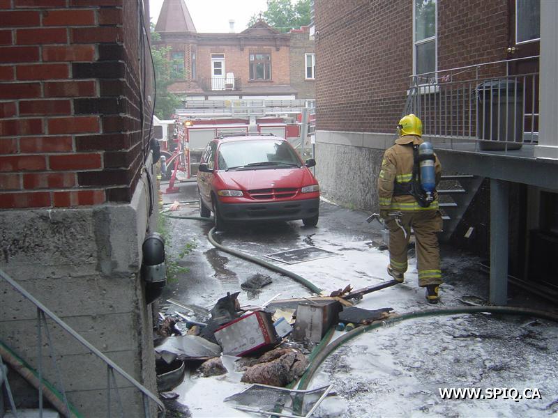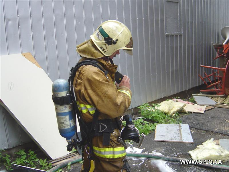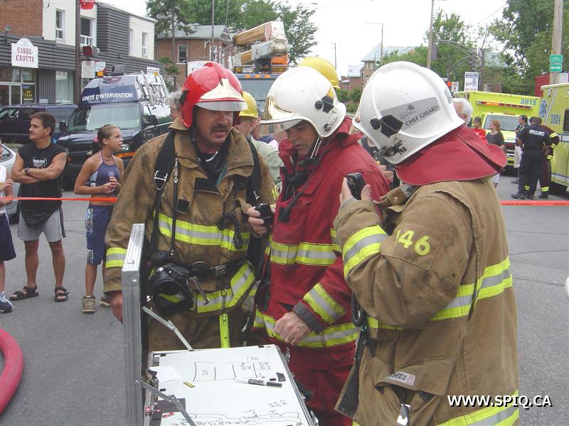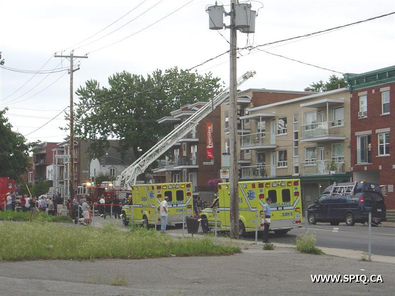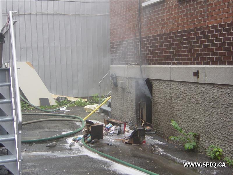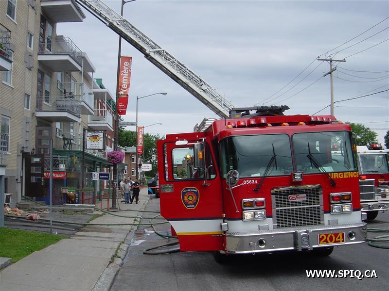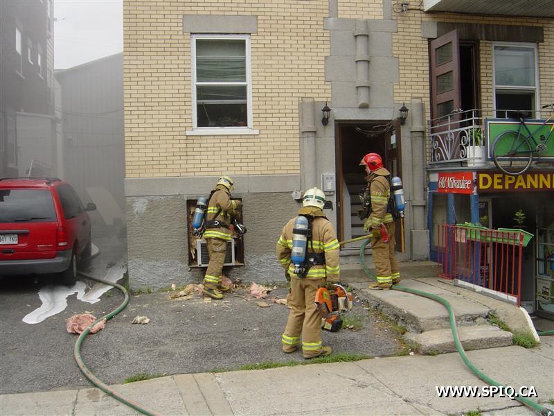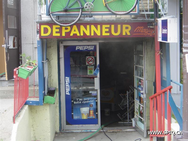L'appel est entré au 911 par une personne qui disait que le feu était pris dans le dépanneur de la première et qu'il devait sortir. À son arrivée, le 204 mentionne que le feu est éclaté au sous-sol du bâtiment. Une deuxième alarme est alors demandée. À son arrivé, le 123 demande la troisième voyant qu'il y a toujours risques de propagations.