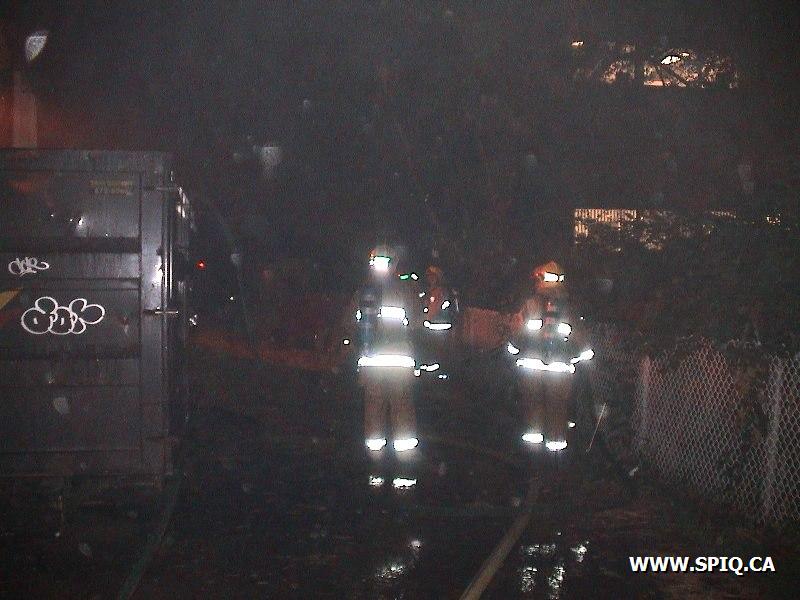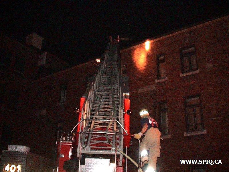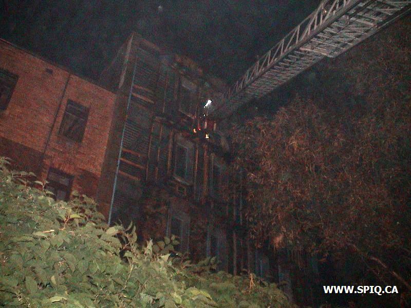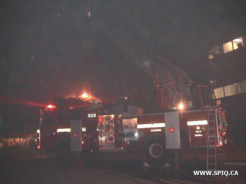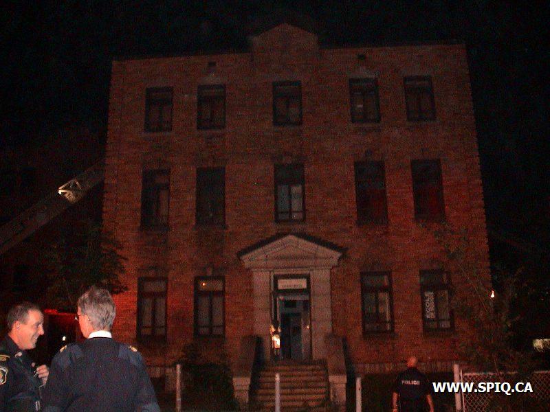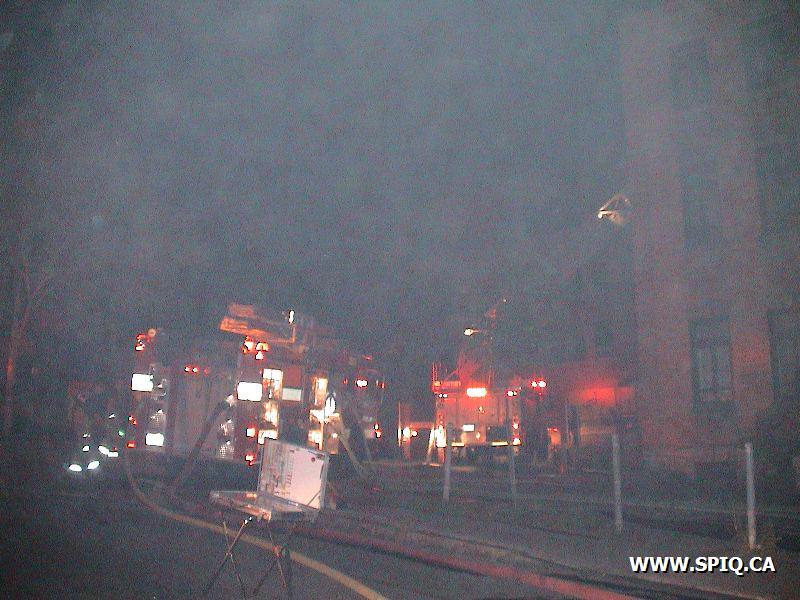Trois premières alarmes ont été sonnées en même temps pour cet incendie, le bâtiment étant derrière le CLSC intersction de Salaberry/Chemin Ste-Foy et plusieurs appels entrant à la centrale sans donner l'adresse exacte du feu.
