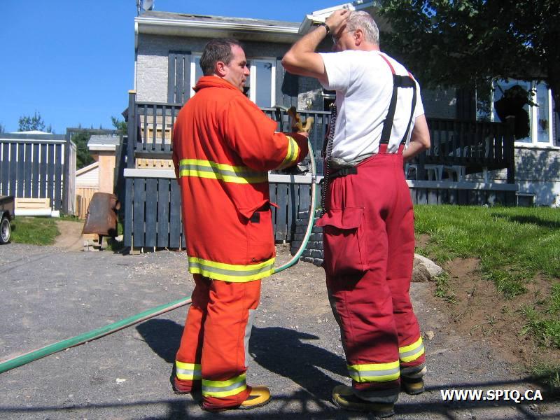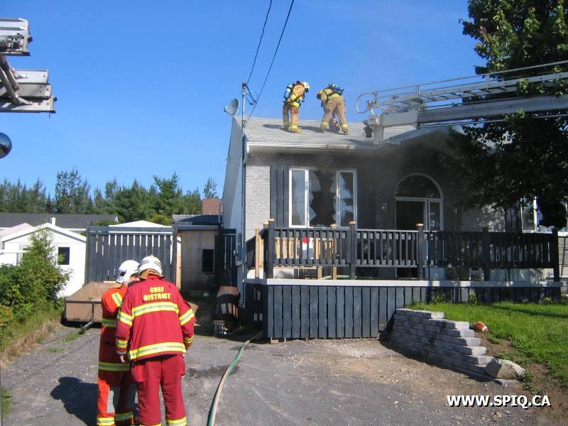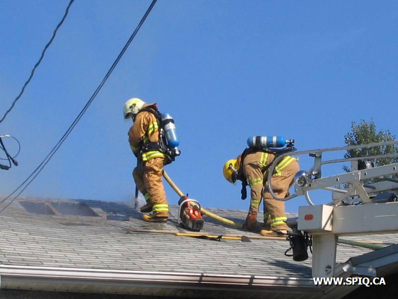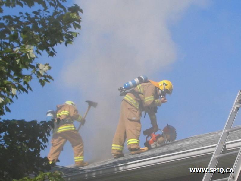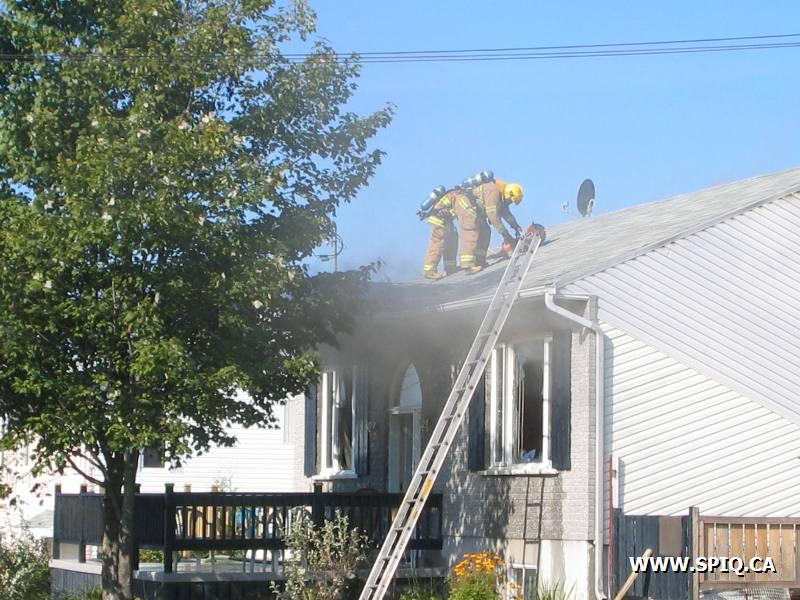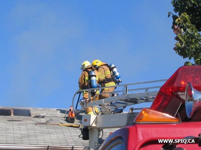 L'appel entre par un passant qui voit le feu sortir de la toiture. En arrivant sur les lieux, le 176 mentionne qu'il y a de la fumée qui sort de la toiture. Une 2ème alarme est alors demandée. Le feu sera principalement confiné à la toiture.
