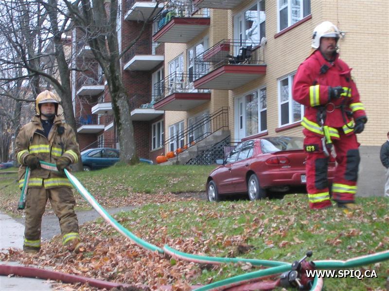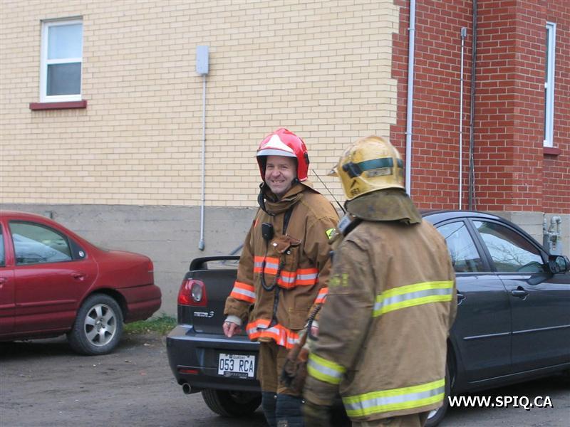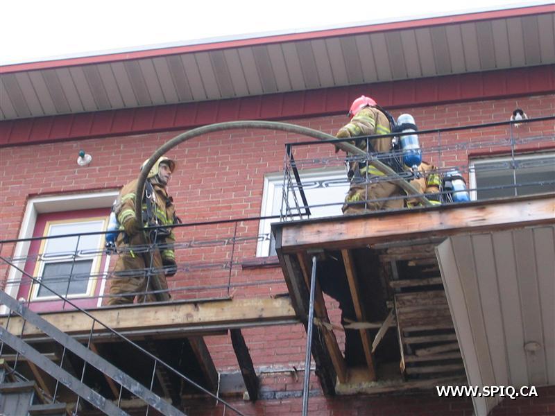 Appel d’un citoyen mentionnant qu’il voit des flammes sortir du balcon arrière du 746 rue Myrand au 3e étage. En arrivant sur les lieux, le 141 mentionne intervention nécessaire et déclanche une 2e alarme. Par la suite, la 2e alarme fût annulée.