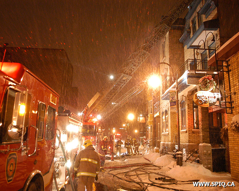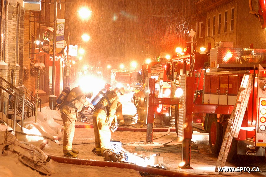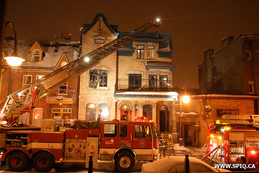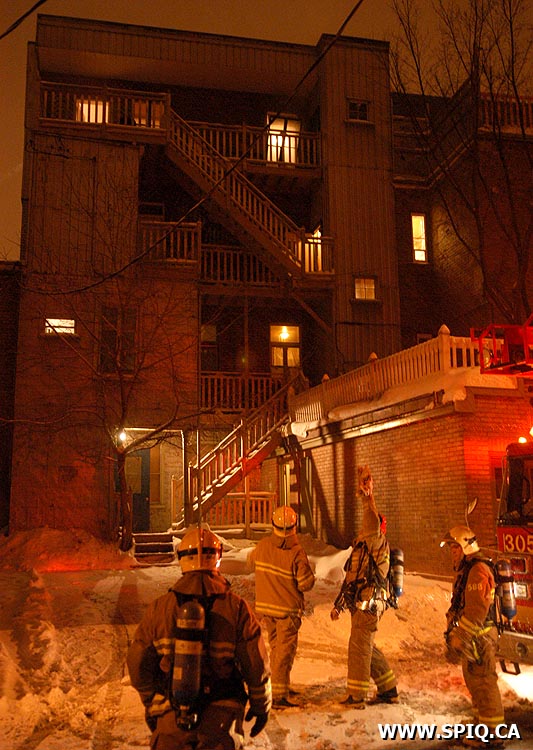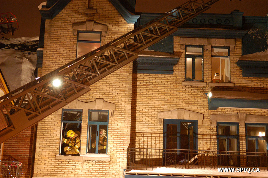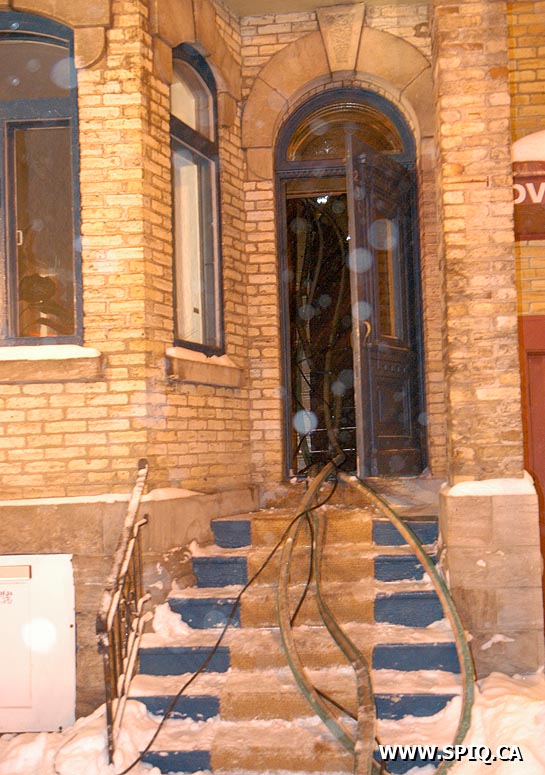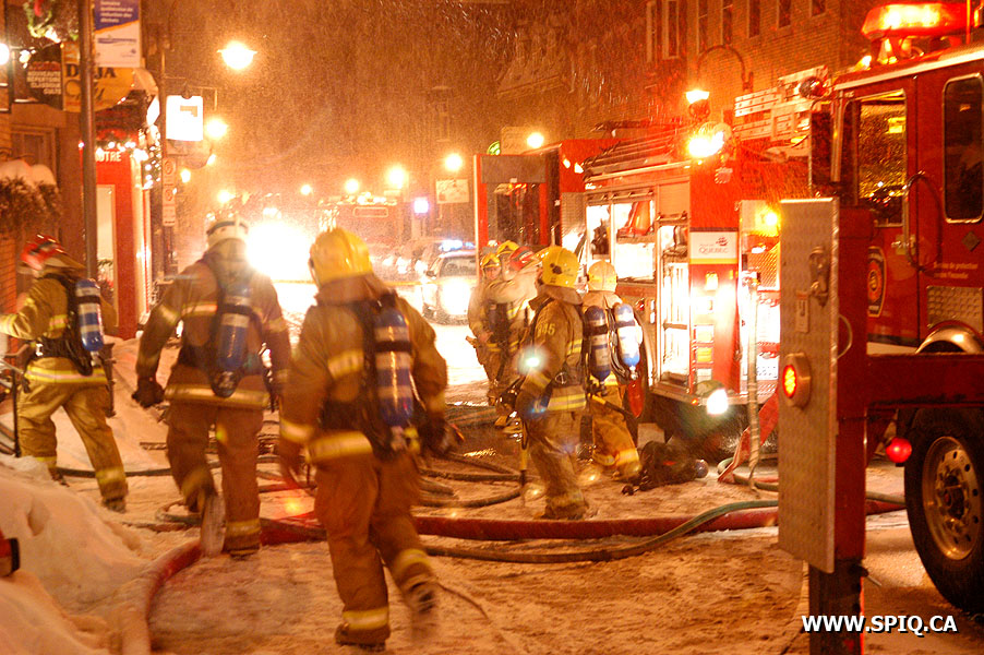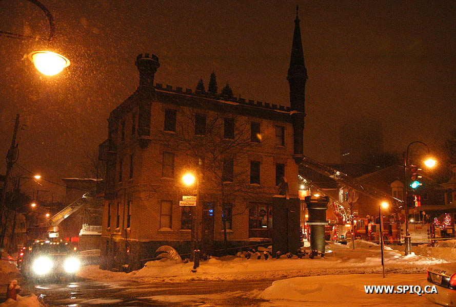 Édifice de trois étages abritant quelques logements et un club vidéo. Initialement, de la fumée semblait sortir des planchers et des murs aux étages supérieurs. La deuxième alarme a été demandée lorsque la fumée prenait de l'ampleur, afin d'avoir des renforts dans les recherches qui restaient infructueuses jusque là: il a fallu finalement beaucoup d'efforts aux pompiers, notamment à ouvrir des parties de la structure, pour trouver le foyer d'incendie qui se cachait dans un mur. La troisième alarme a été demandée lorsque les flammes ont subitement pris de l'ampleur après leur découverte. Le feu a toutefois été contenu rapidement, mais beaucoup de travail fut nécessaire pour continuer à ouvrir et inspecter la structure ainsi que pour protéger les biens contre les dégats d'eau. Plusieurs personnes présentes dans l'édifice touché et dans le bâtiment voisin ont pu trouver refuge à la caserne #1, située tout juste à côté, une douzaine d'entre elles devront être relocalisées. Les dommages sont sommairement évalués à 50,000$.