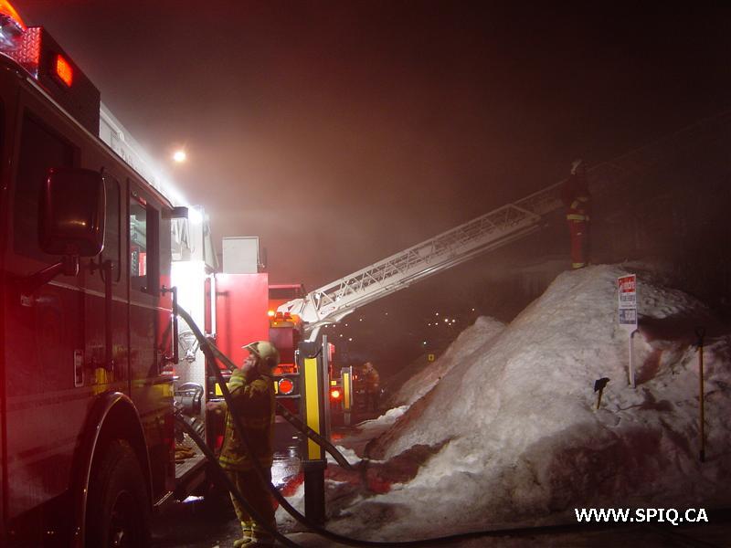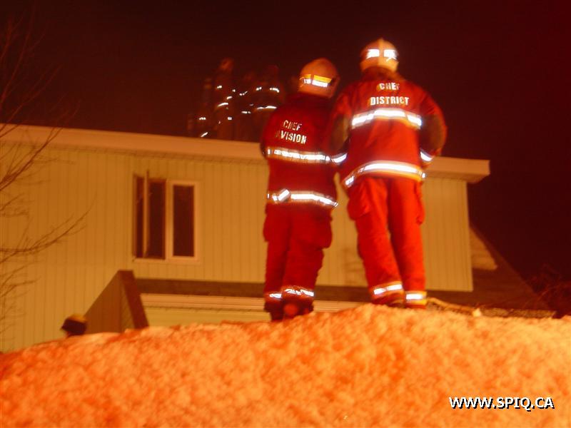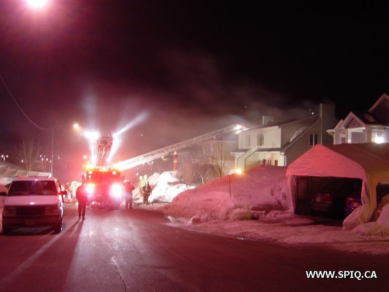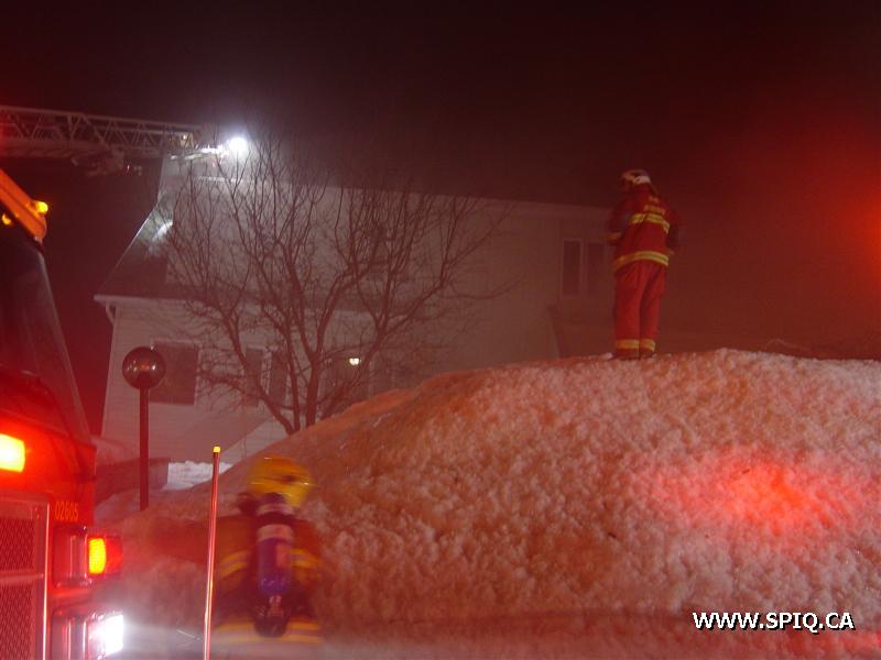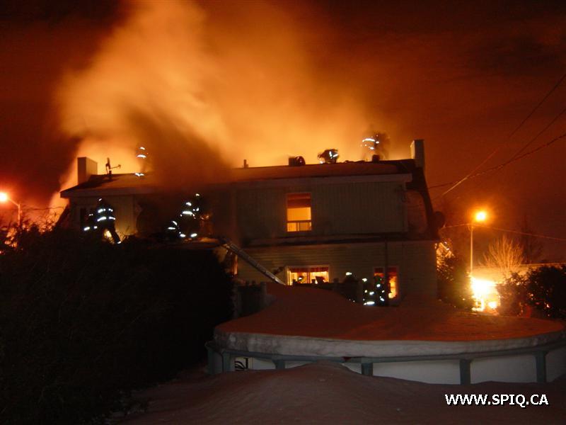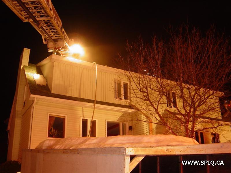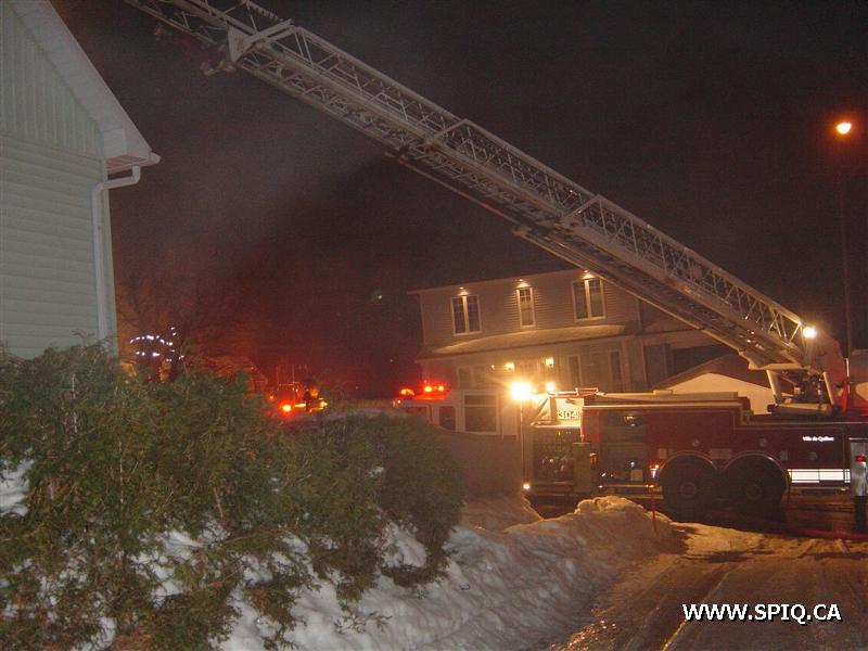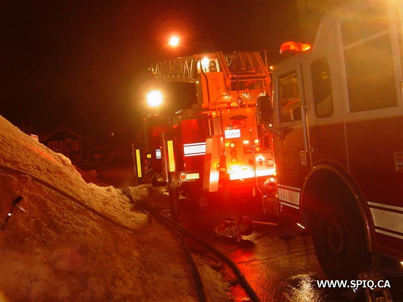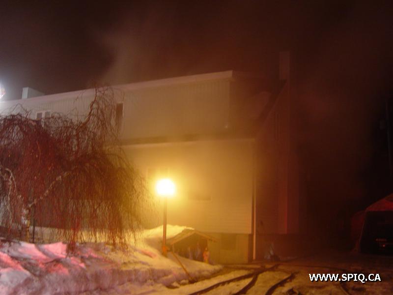L'appel entre au 911 mentionnant que le feu est pris dans la maison. En arrivant sur les lieux, le 308 confirme qu'il y a de la fumée apparente et qu'il y a une intervention nécessaire. À son arrivée, le chef demande une 2è alarme voyant que le feu est éclaté à l'arrière et qu'il y avait risques de propagation à la maison voisine.