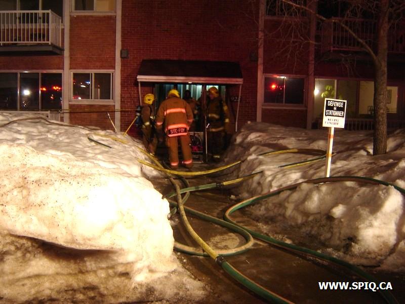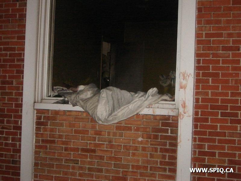 En route, le central indique qu'il y a possibilité de sauvetage et par la suite, qu'un bébé était pris dans le logement. Dès l'arrivée des premières unités, la 2ème alarme est demandée.