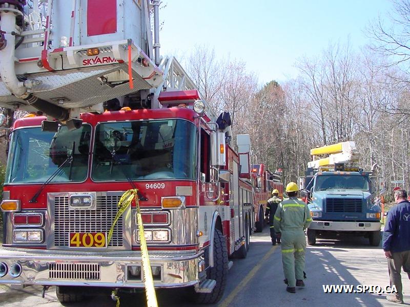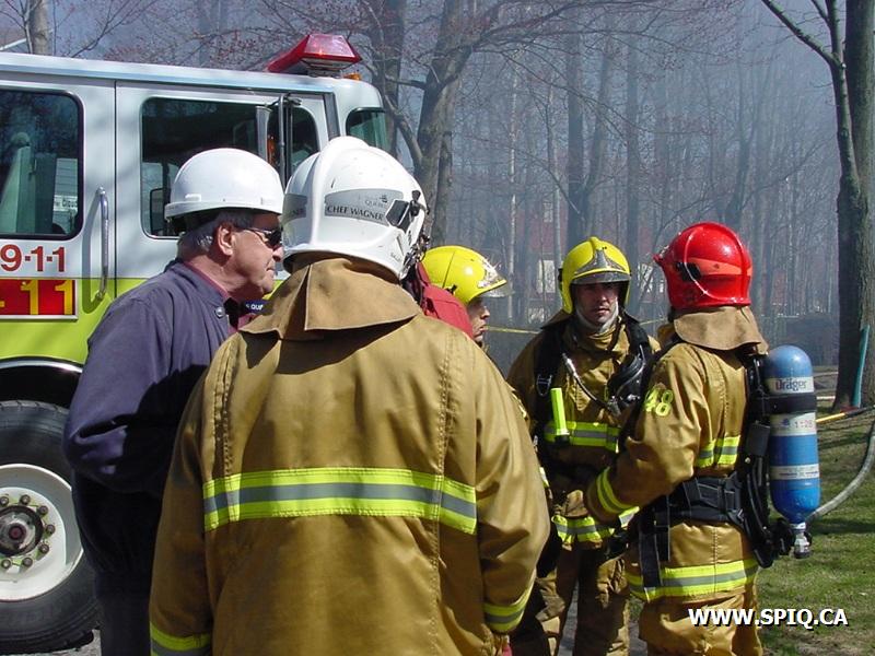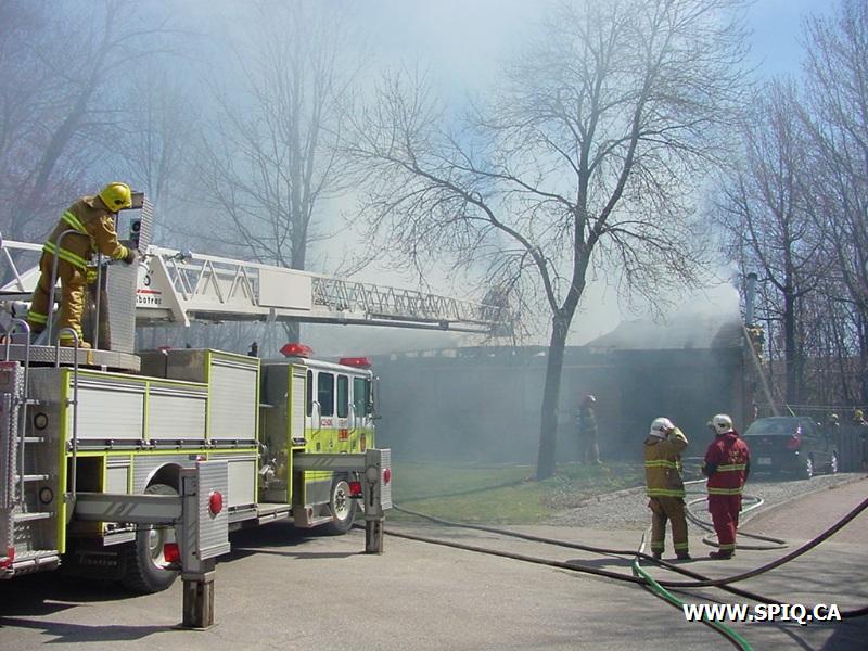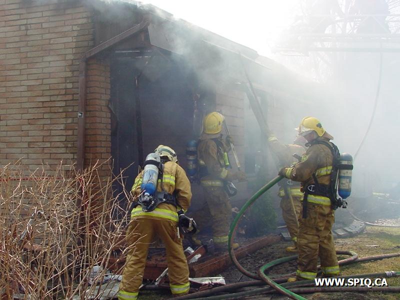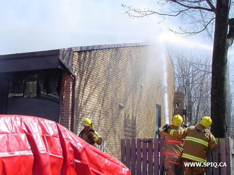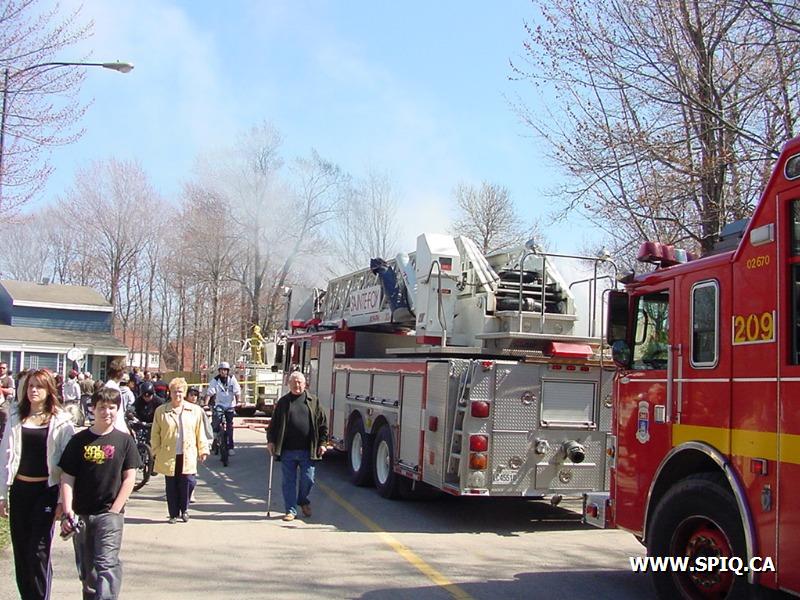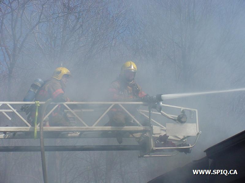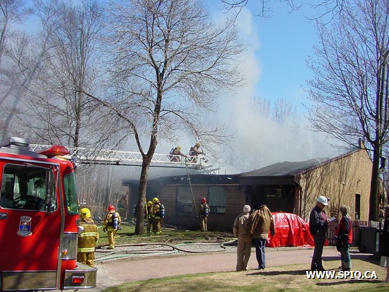 Violent incendie dans la toiture d'un jumelé: dès la réception de l'appel, le 1105 rapporte une colonne de fumée dans le ciel visible de l'autoroute de la Capitale. Un pompier en congé passant par là confirme à la centrale que le feu est éclaté dans la couverture des deux unités du jumelé et qu'on ne sait pas s'il y avait encore quelqu'un à l'intérieur: avec ces détails, le 1105 demande la 2ème alarme, ce qui est confirmé par le 131.