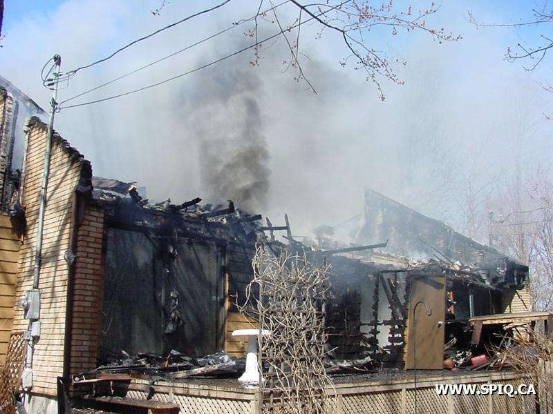À son arrivée, le 210 peut heureusement confirmer que personne n'est resté à l'intérieur. Les dommages aux deux unités du jumelé sont extrêmement considérables. Le 211 et le 411 durent retourner sur les lieux pendant une heure après souper pour éteindre quelques foyers d'incendies.