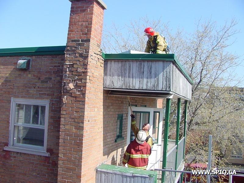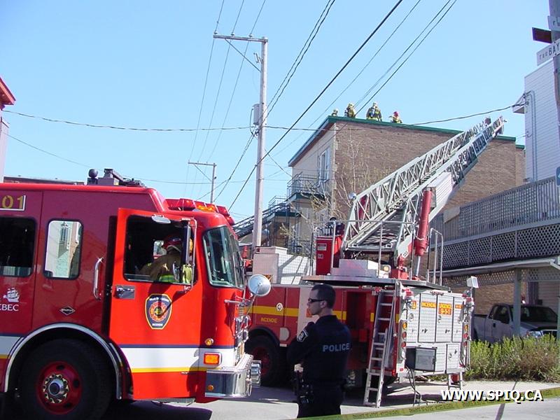 En route pour l'appel, le 1102 est violemment entré en collision avec une petite Toyota Echo à l'angle de Bayard et des Oblats. Il a fallu une bonne trentaine de minutes d'efforts des équipes du 1102 et du 305 pour extirper le conducteur de la petite voiture qui s'en est tiré avec des fractures aux côtes et des contusions.