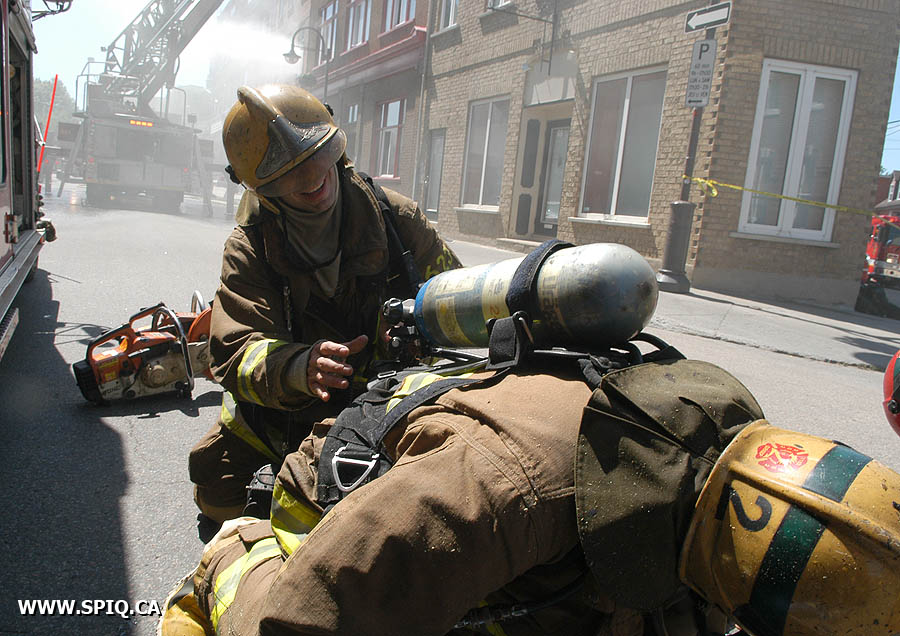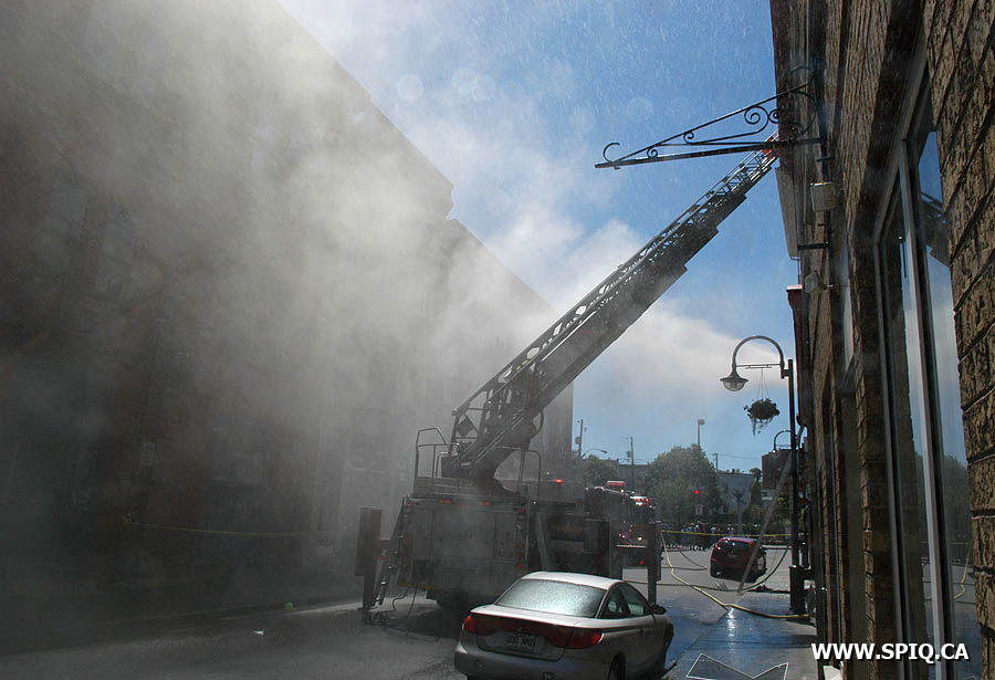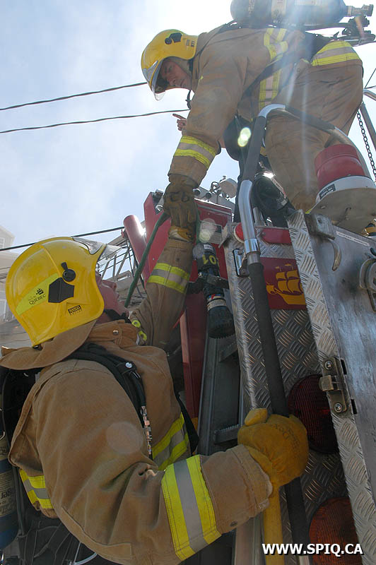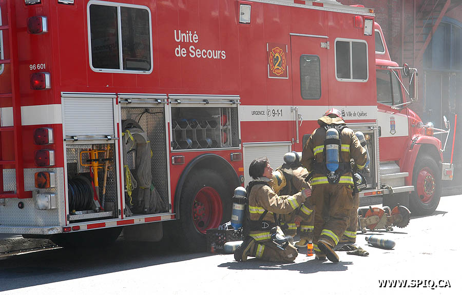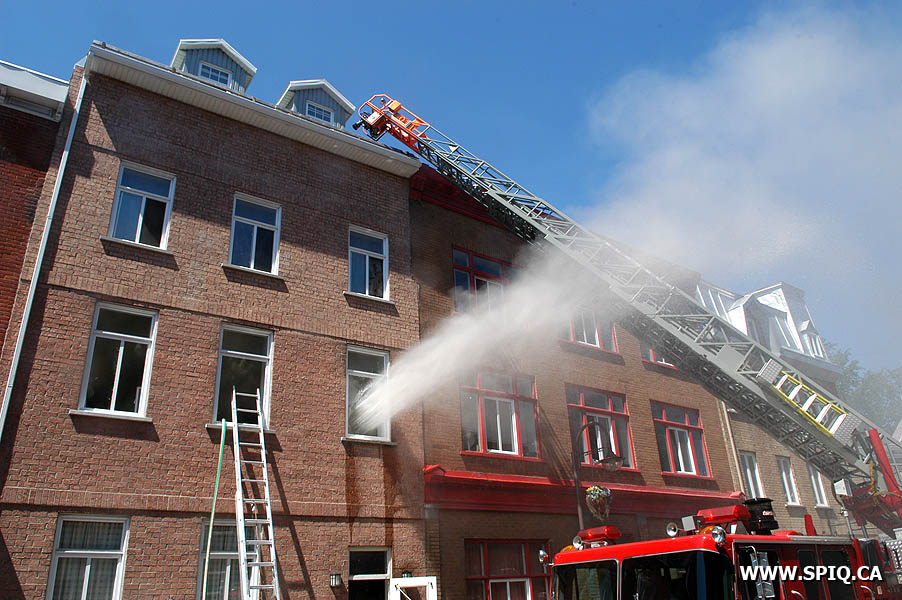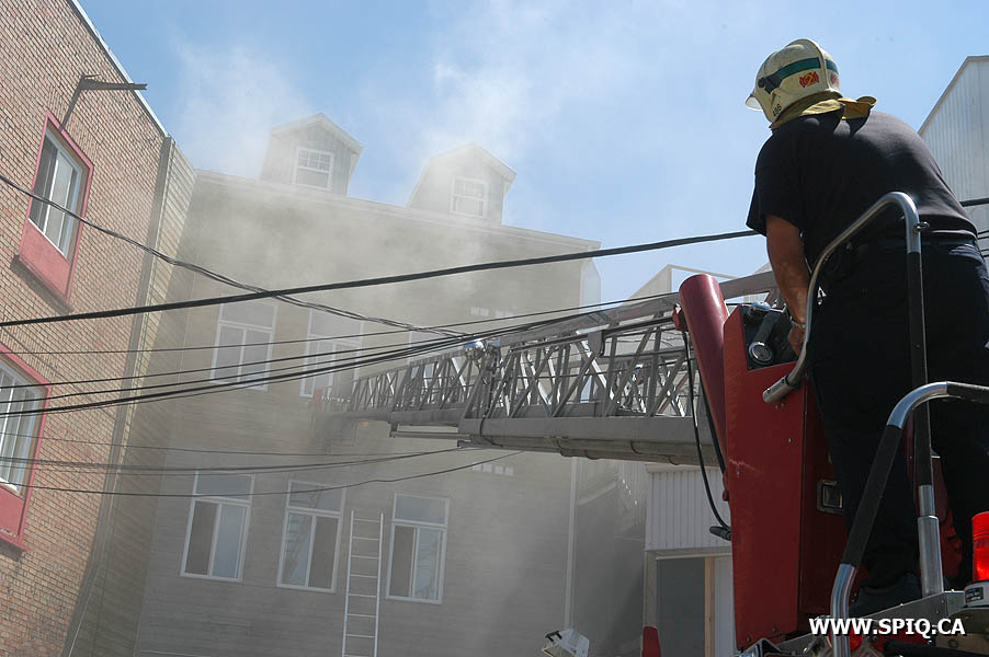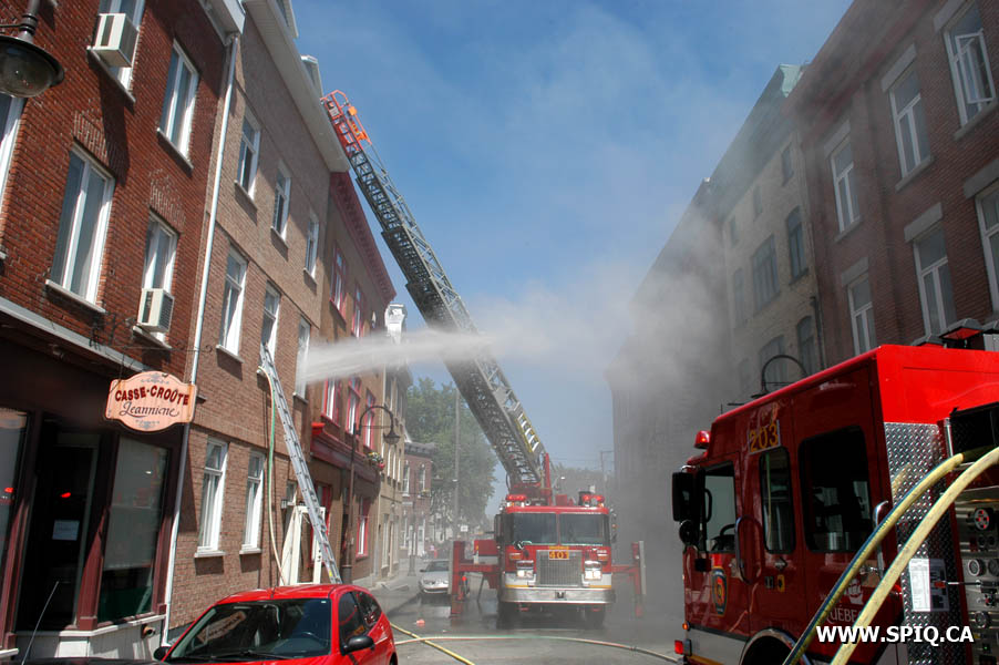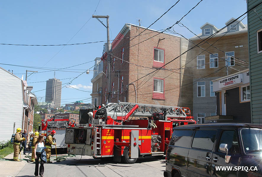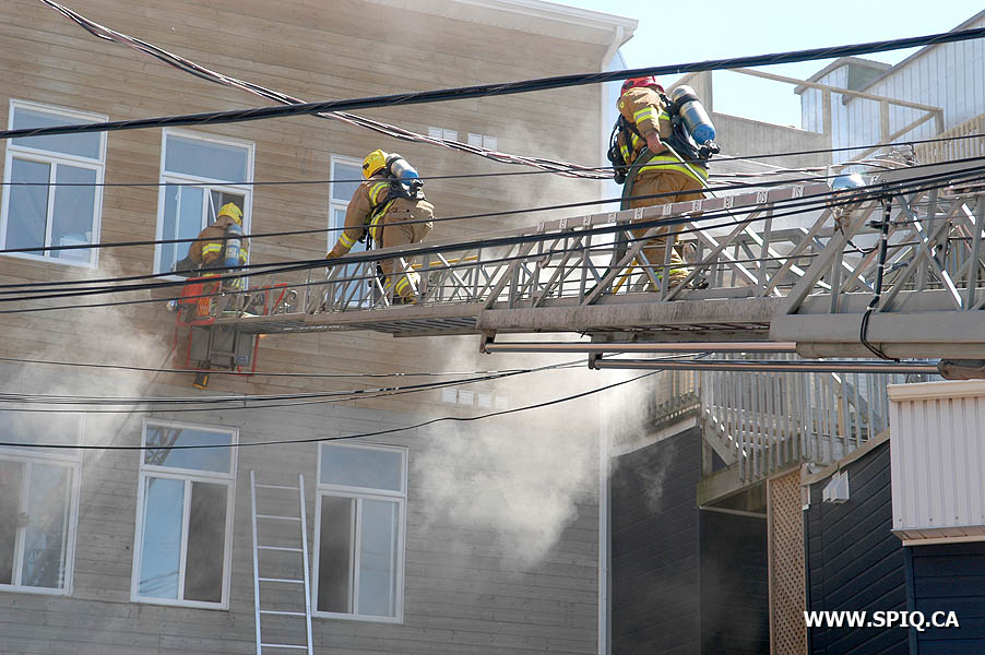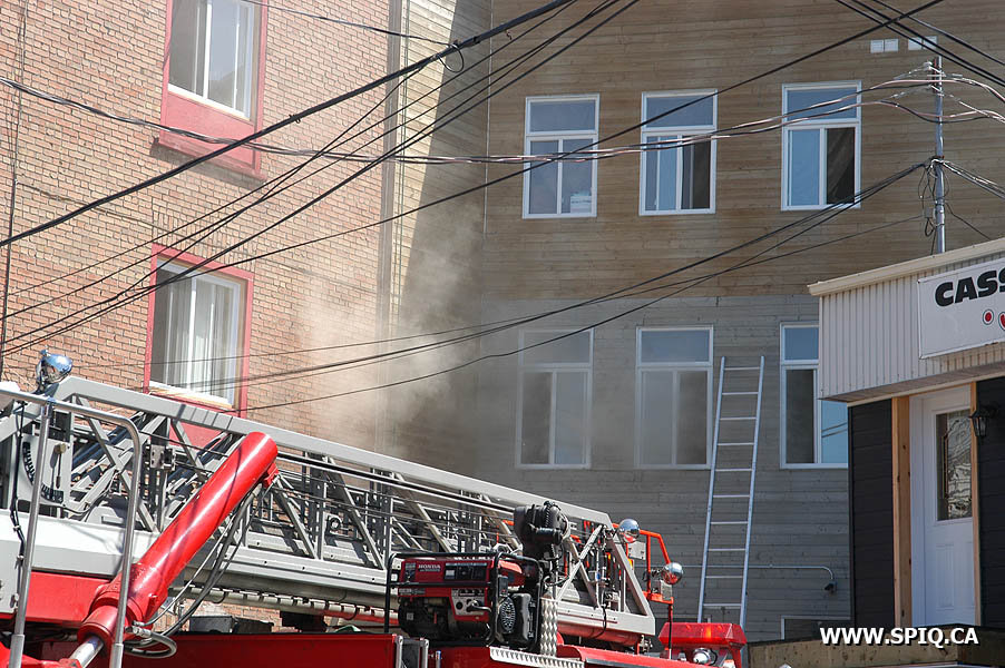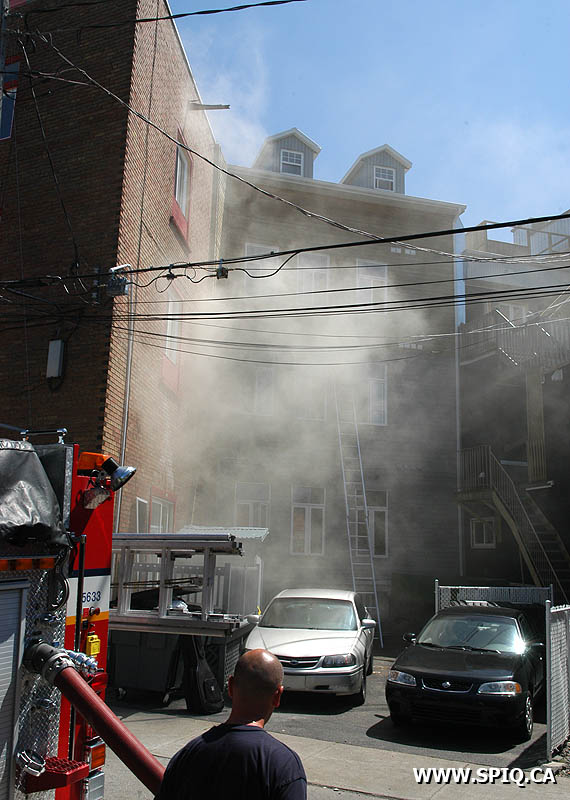 Immeuble à logements de 3 étages avec accotement aux secteurs 2 et 4. La centrale 911 reçoit un appel d'une personne disant que son appartement est rempli de fumée. Les premières unités sur les lieux confirment la fumée au 2ème étage et la 2ème alarme est demandée. Un délestage à distance est par la suite requis pour que les échelles puissent être dressées à l'arrière de l'édifice par la rue d'Argençon. Les équipes ayant de la difficulté à trouver le foyer de l'incendie, une troisième est demandée par la suite.