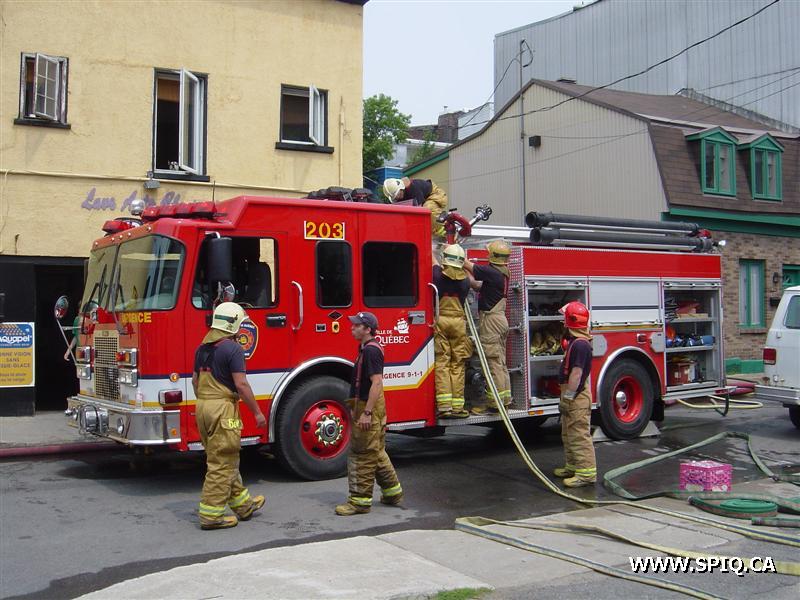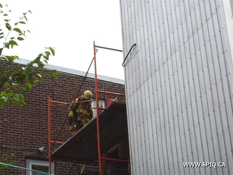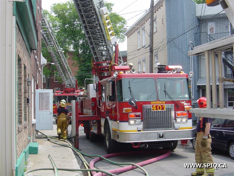 L'appel entre au 911 par un locataire du 242 rue Chenier. Celui-ci mentionne qu'il voit de la fumée sortir par la lumière du grenier. À son arrivée le 112 mentionne qu'il y a de la fumée qui sort de la toiture, quelques minutes plus tard, la 2è alarme est demandée. Le feu est rapidement mis sous-contrôle.