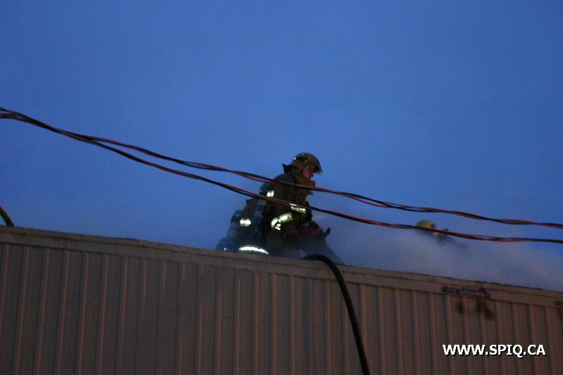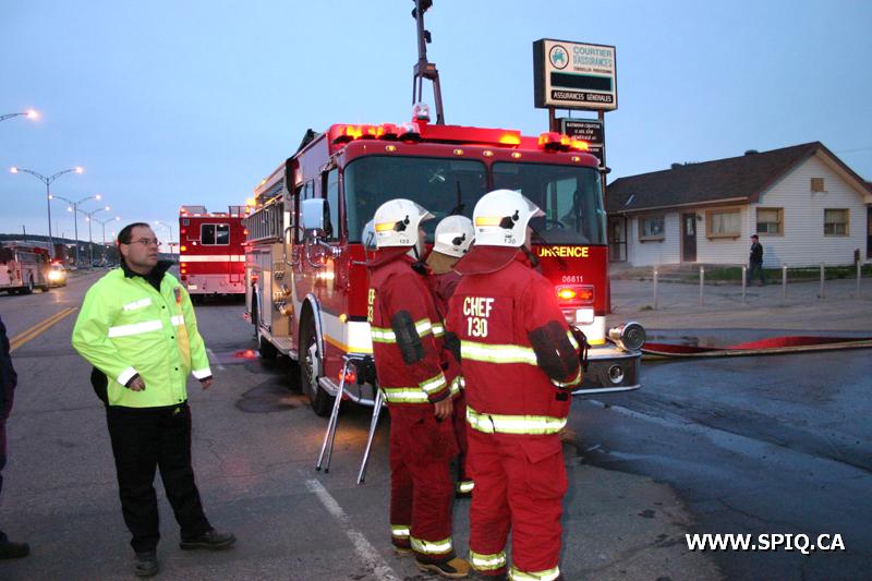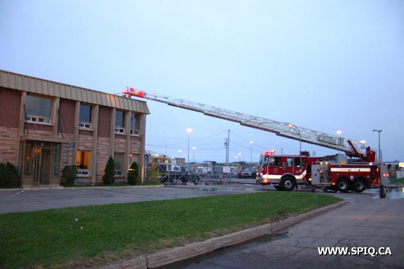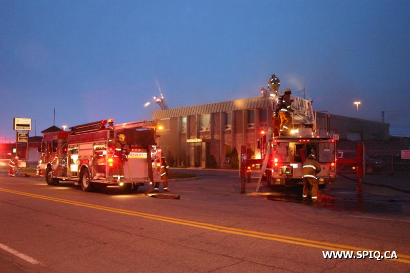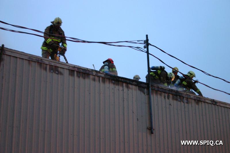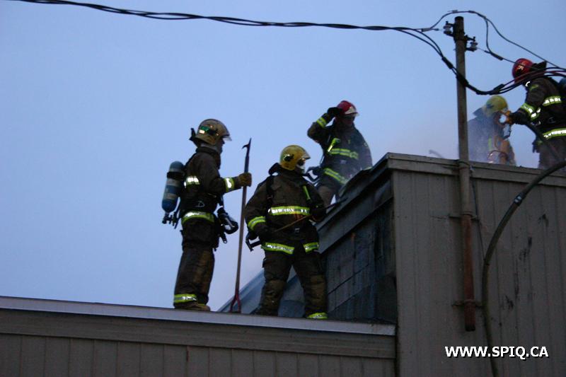 C'est un passant qui a donné l'alerte : une fumée était visible à l'arrière du bâtiment et des flammes sortaient par la corniche. Le premier véhicule arrivé sur les lieux, le 207, confirme que le feu couvre dans l'entretoit. Des opérations d'ouverture du toit ont alors lieu rapidement pour tenter d'empêcher toute propagation. Étant donné qu'il était difficile d'atteindre les flammes dans la corniche et l'entretoit et que les vents violents attisaient les flammes, les 2e et 3e alarmes ont été sonnées pour apporter du renfort aux équipes sur place.