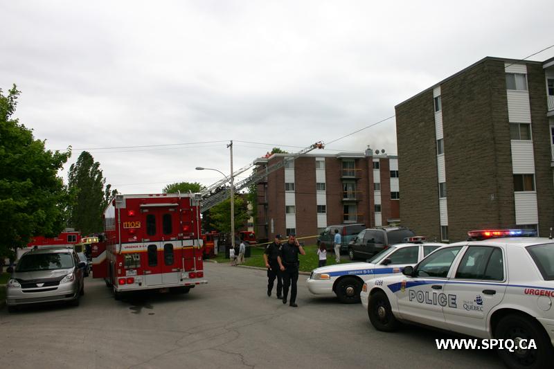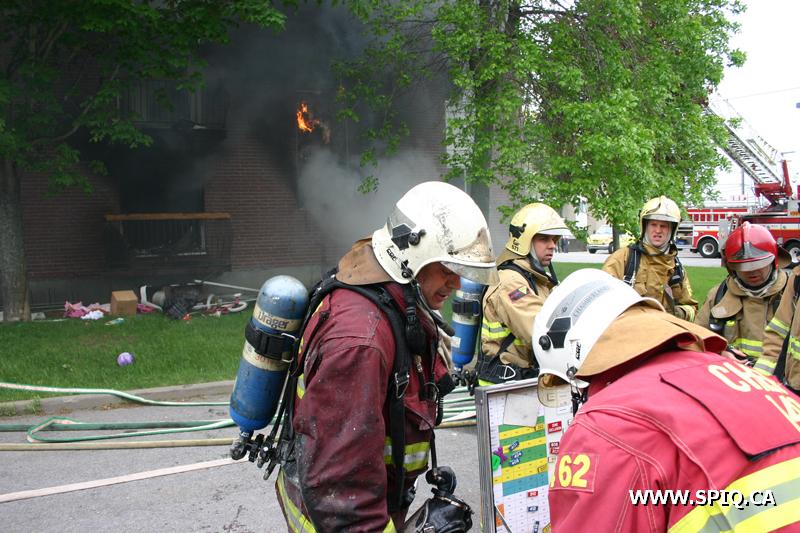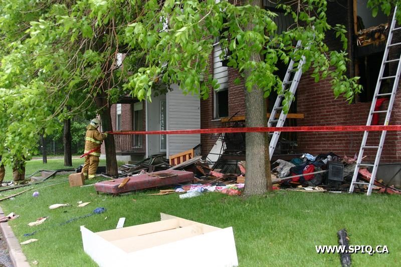 L'incendie, qui a pris naissance dans un logement du rez-de-chaussée, a été découvert par un résident de l'endroit. Le central 911 a reçu quelques appels pour signaler cet incendie. En route, le 207 mentionne que de la fumée est visible et demande une 2e alarme. Sur place, les premières équipes font face à un feu éclaté ainsi qu'à une situation de recherche et évacuation car des gens semblent encore présents dans leurs appartements. Les secours étant engagés à plein, la 3e alarme est demandée en renfort seulement 5 minutes après la première alarme.