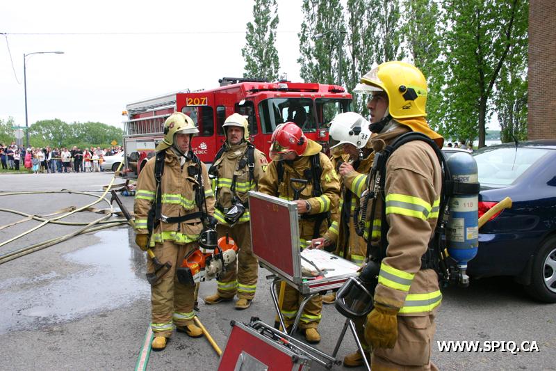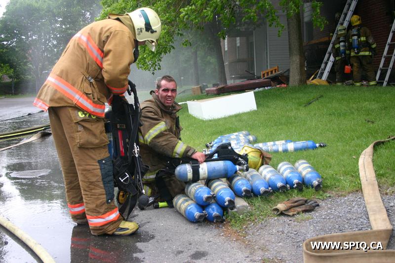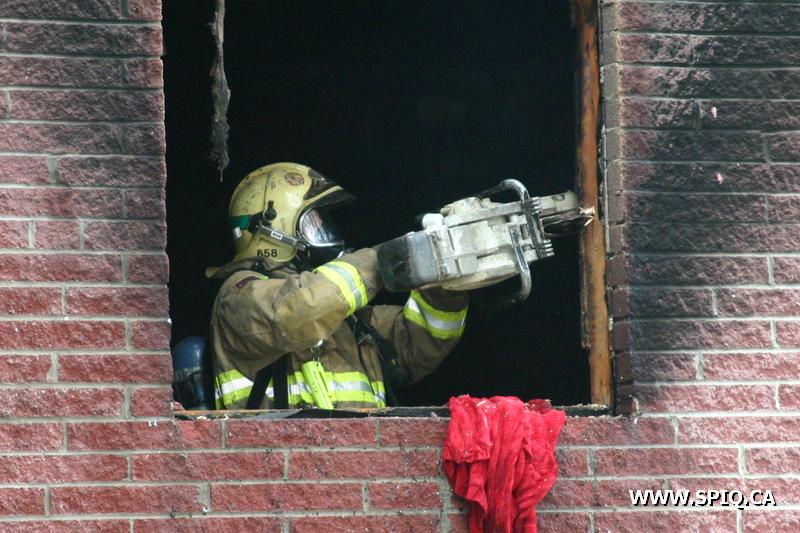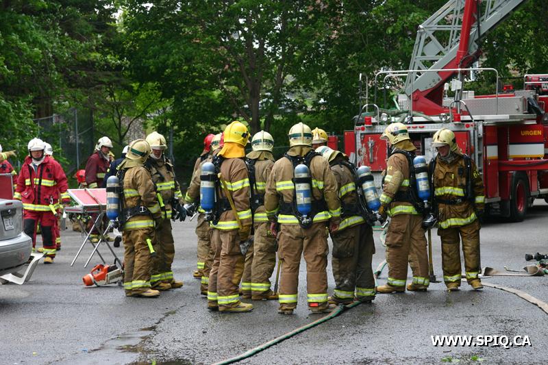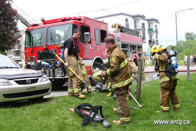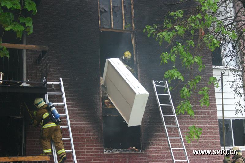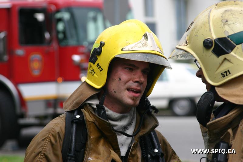 Pendant que les équipes des véhicules 207 et 307 effectuent une première attaque agressive pour baisser l'intensité des flammes, les hommes du 1102 procèdent à l'évacuation de l'immeuble. Malgré l'attaque initiale, les flammes demeurent intenses et devant l'incendie en progression, le PC demande les renforts de la 4e alarme.