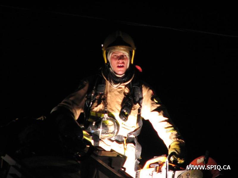 L'appel est d'abord donné comme une vérification pour le 203 mais est immédiatement complété en 1ère alarme avec les détails qui entrent: on parle donc de morceaux de bois qui brûlent à l'extérieur et du feu qui commence à se propager à la maison.