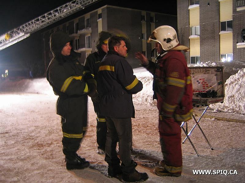 L'appel au 911 fait état d'un feu au 1er étage. Par la suite, d'autres appels mentionnent que du feu sort par une fenêtre d'un logement. À leur arrivée, les unités 206 et 306 s'affairent au sauvetage et à l'évacuation. L'intervention est nécessaire et la 2ème alarme est immédiatement demandée. Le feu est rapidement maîtrisé au logement #14 et est déclaré plus tard sous contrôle.