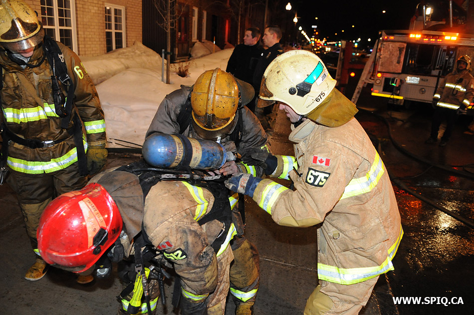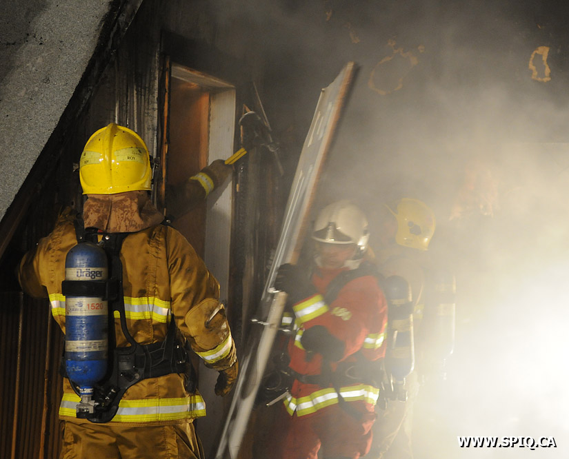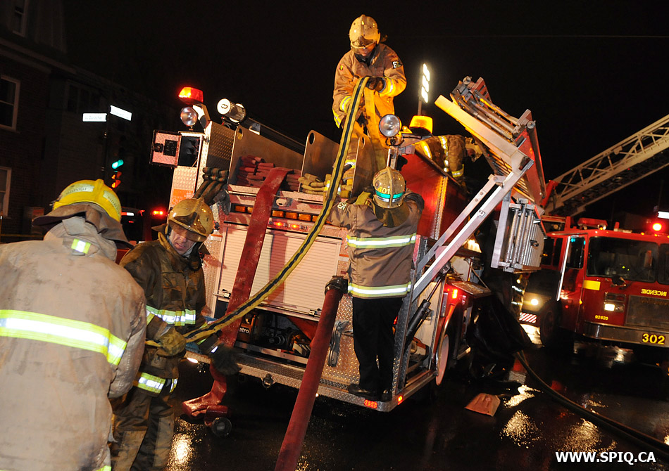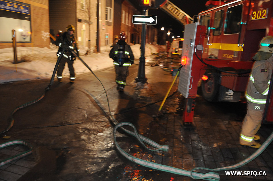 Plusieurs appels sont entrés à la centrale, d'abord pour le 407 rue Hermine, puis ensuite pour le coin Charest/Durocher, mentionnant fumée et flammes apparentes. La première unité arrivée sur les lieux découvre alors qu'un garage qui relie deux bâtiments de 3 étages est la proie des flammes. Celles-ci étaient intenses mais semblaient s'attaquer surtout aux murs extérieurs et aux galeries à proximité. Le feu fut rapidement rabattu, mais les craintes qu'il se soit propagé aux bâtiments voisins justifiait des renforts. Finalement, l'élément destructeur fut intercepté dans le tambour voisin, mais la propagation fut arrêtée à cet endroit.