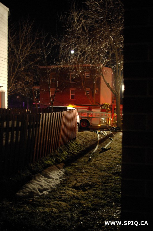 L'appel initial à la centrale 911 mentionnait que le feu serait pris dans les escaliers.