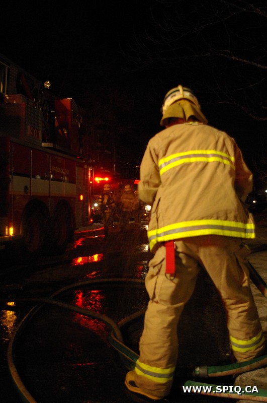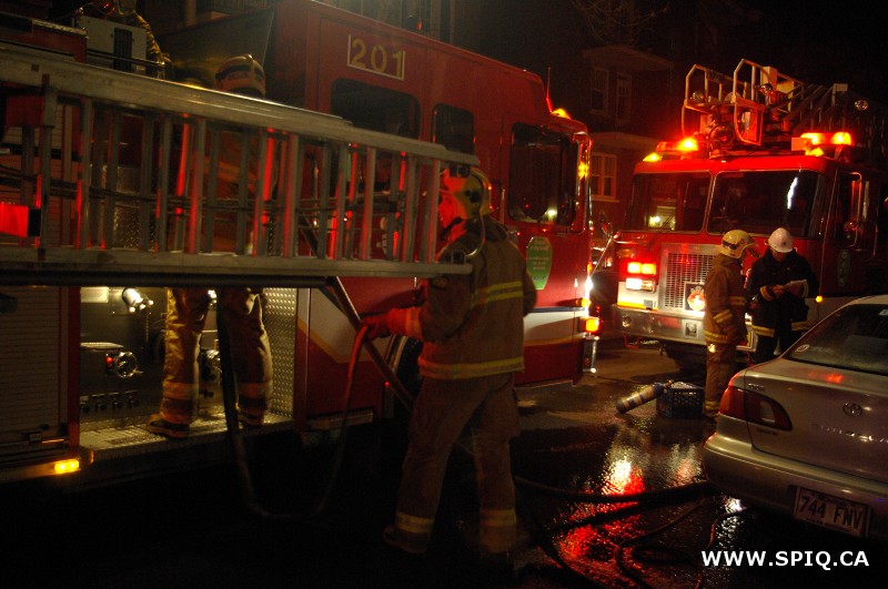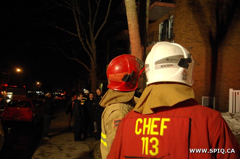 À son arrivée sur les lieux, l'officier du 201 confirmait le feu éclaté dans la cage. Il demanda alors la 2è alarme.