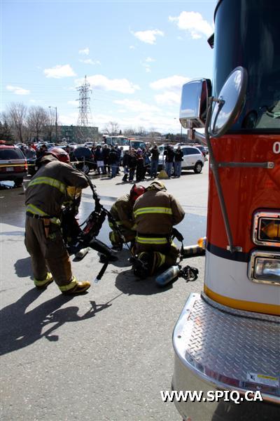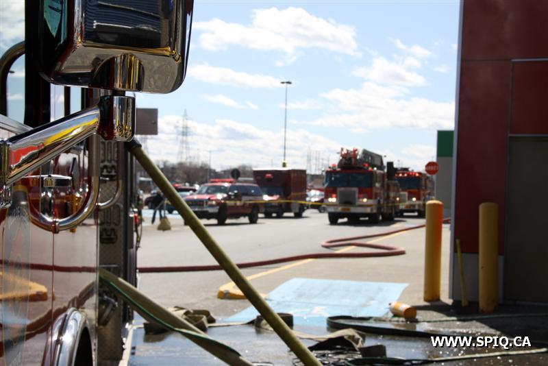Plusieurs appels innondent la centrale 911 pour signaler l'incendie. Le feu est pris dans des vêtements du commerce. Les deux permiers véhicules a arriver sur les lieux s'affairent aux vérifications initiales. Le bâtiment est immense, l'évacuation est complexe et le foyer d'incendie est difficile a trouver. Devant la situation, le Chef Daigle (113) ordonne une 2e alarme.