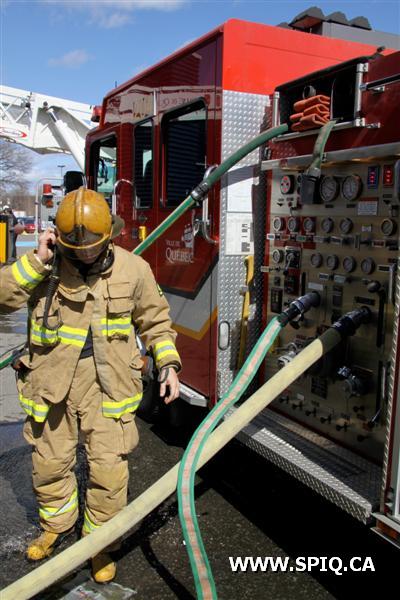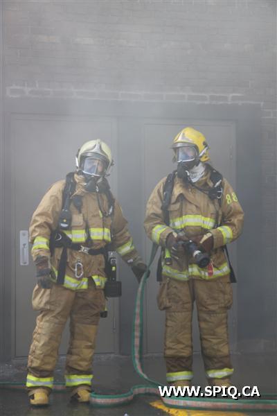Malgré le fait que des gicleurs aient fait une partie du travail, la fumée demeure persistante et le feu semble être en progression, on demande alors une 3e alarme.