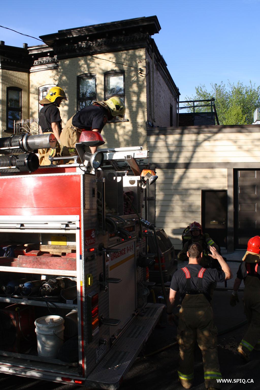 Feu de galerie à l'arrière au 2ème étage de l'édifice. Le 132 à son arrivée dit que le feu semble provenir du toit et demande une 2ème alar par mesure de prévention.
