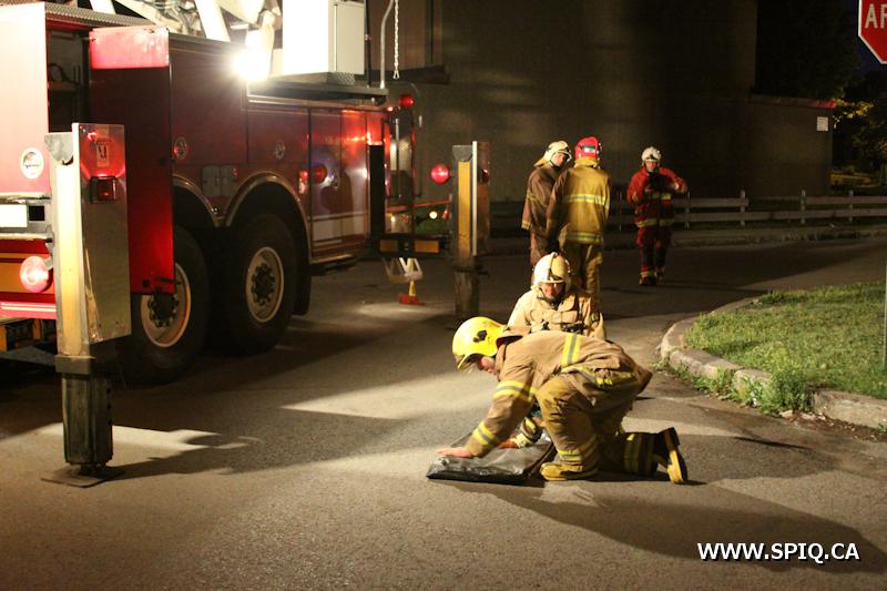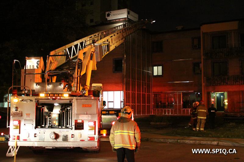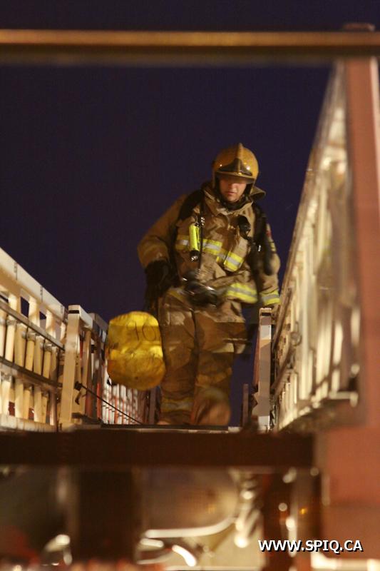 Le Chef Vallée est le premier a arriver sur les lieux. Rien n'est visible de l'extérieur. Les équipes du 204 et 302 vont alors en reconnaissance. la fumée est visible, mais le foyer d'incendie est très difficile a trouver. L'intensité des flammes fait en sorte qu'une des fenêtres de l'appartement se casse; le feu éclate alors et permet donc de localiser l'origine de l'incendie. On monte donc en 2e alarme.