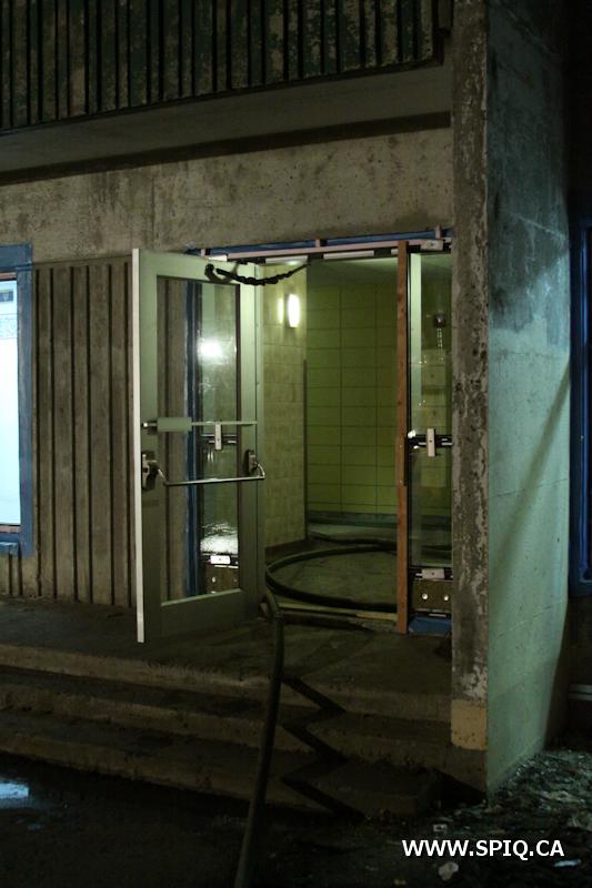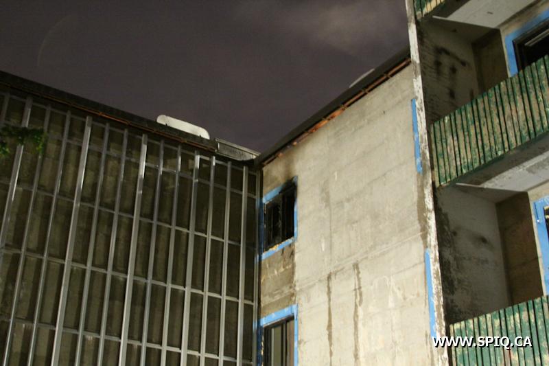 L'attaque agressive permet d'éteindre les flammes rapidement. La structure de béton fait en sorte que les dommages sont limités à l'appartement d'origine. Les recherches ont permis de valider qu'il n'y avait personne à l'intérieur du l'appartement impliqué.