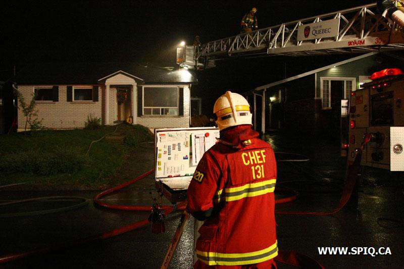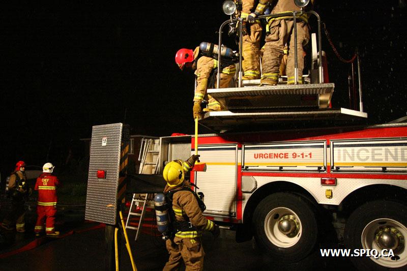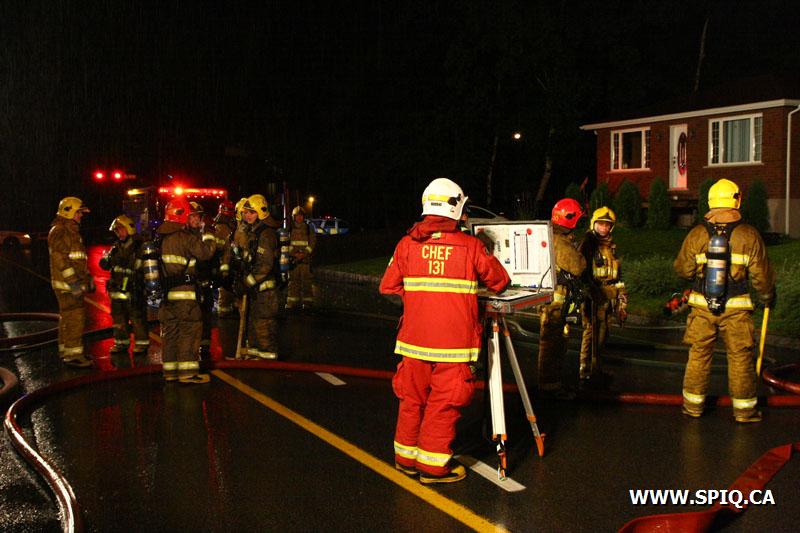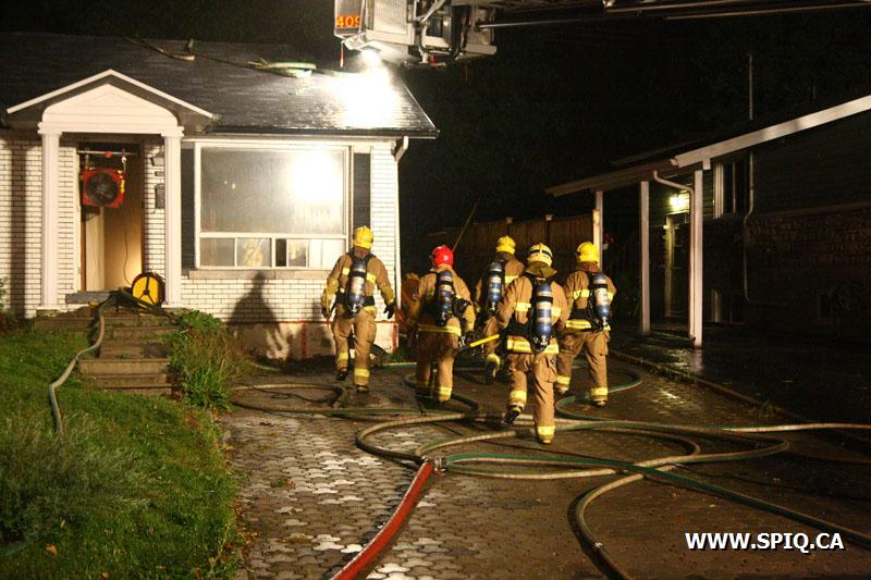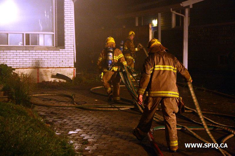 Les premières informations font état de beaucoup de fumée au 1024 Boulevard Pie-XII, puis que des flammes sont visibles par les fenêtres. Suite aux informations que ça brûlerait beaucoup et que des flammes seraient visibles au salon de la résidence le 209 a demandé une 2ième alarme.