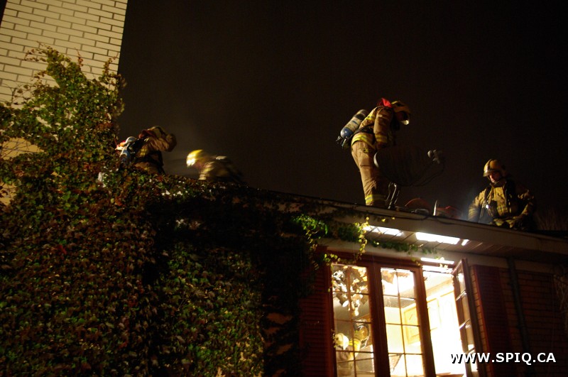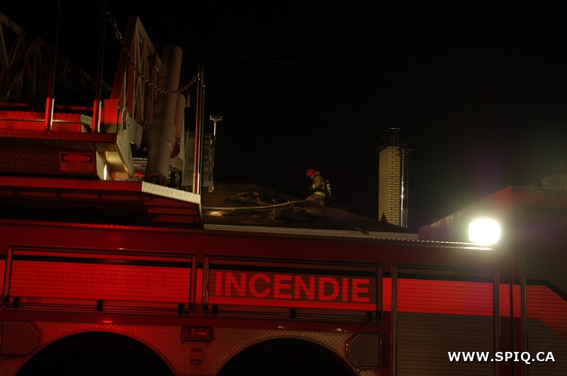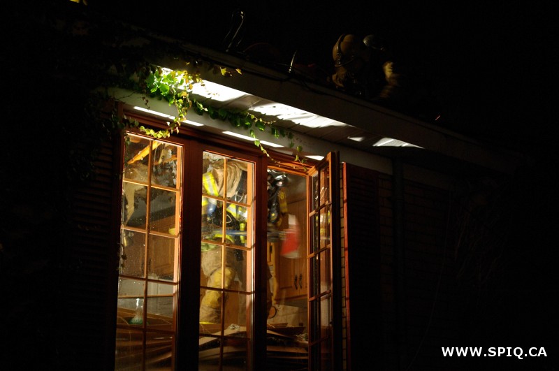 Les premières équipes entrent à l'intérieur de la maison, le feu court dans l'entretoit. L'incendie ravage une bonne partie de l'entretoit et une deuxième alarme est donnée.
