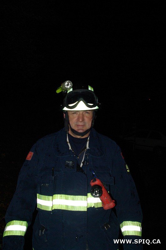 De retour de France, le chef-investigateur Jean-Pierre Boilard arborant fièrement son nouveau casque !