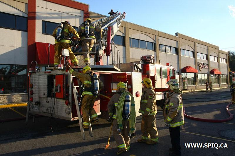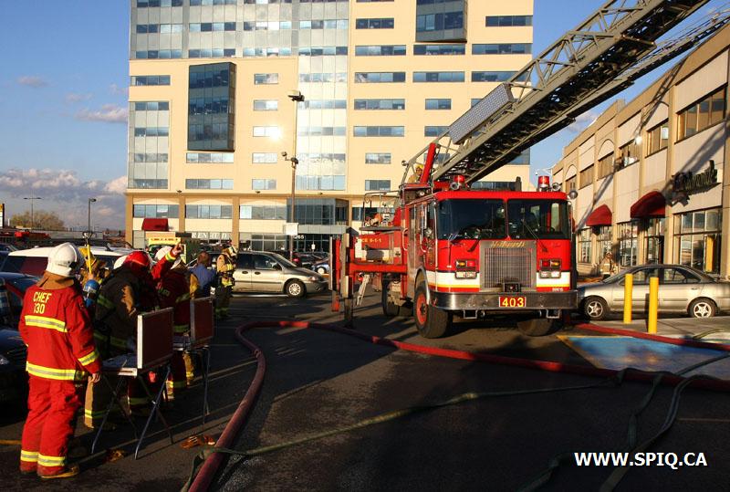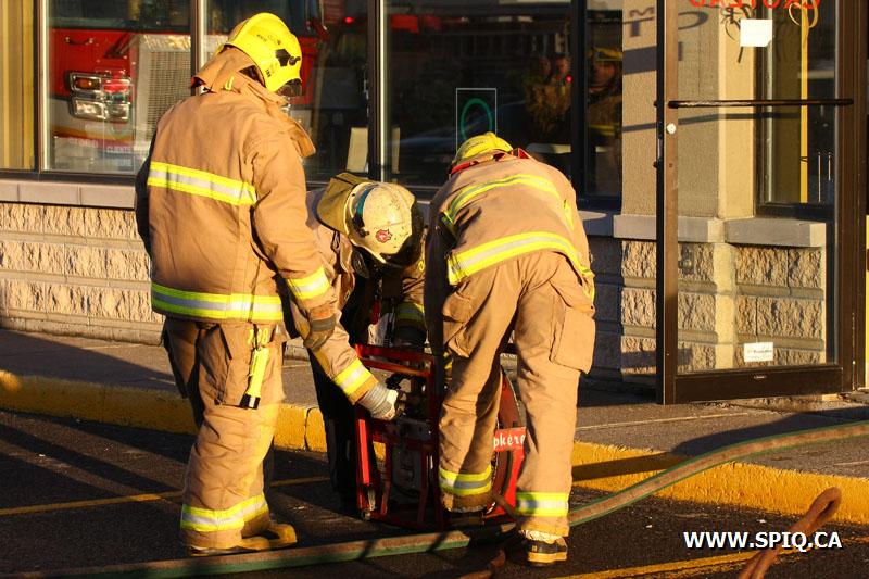 Étant donné la présence de fumée abondante à l'intérieur des commerces et craignant que l'incendie se soit propagé dans les murs une 2e alarme a été sonnée. L'origine de l'incendie ayant été localisé dans la chambre électrique, un délestage à distance a été demandé, afin de faciliter les opérations.