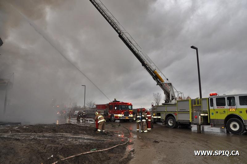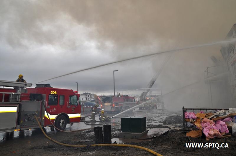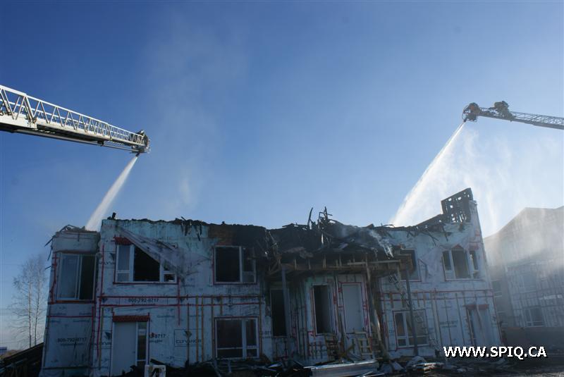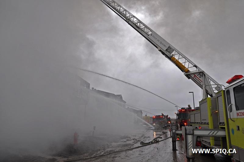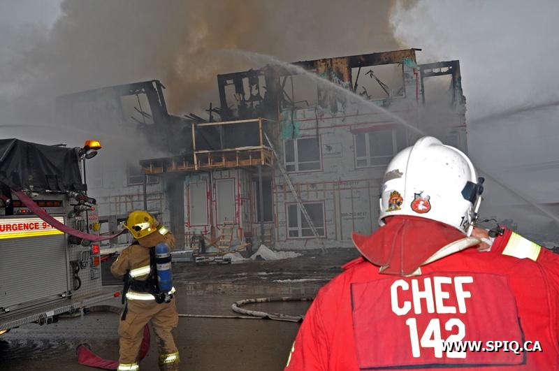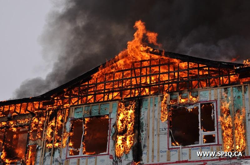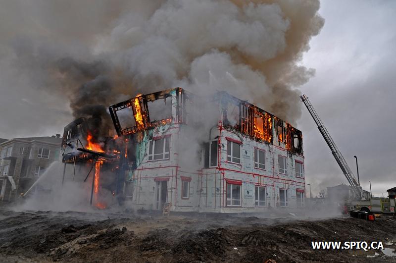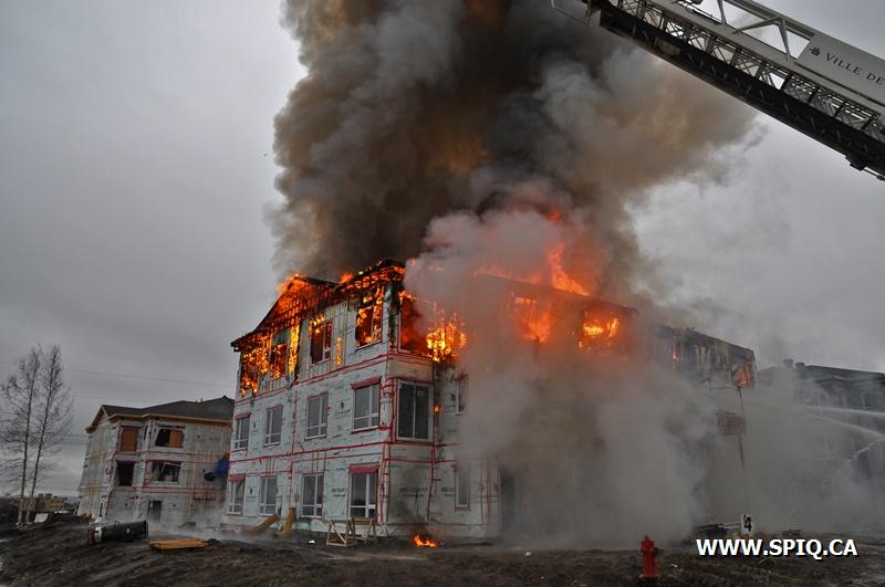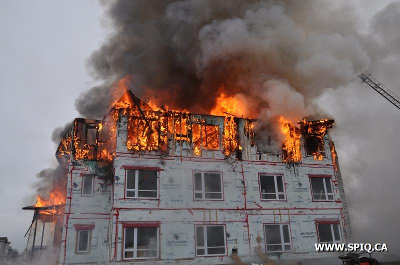 Un spectaculaire incendie a complètement détruit un édifice locatif de 3 étages en construction au 2131 rue du Bienfait, une nouvelle artère dans le secteur Robert-Bourassa/Chauveau.