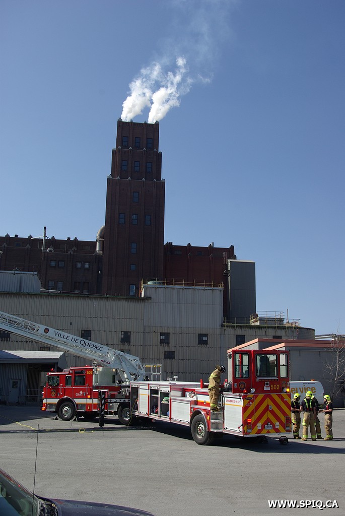 Les détails mentionnent que le feu est pris dans le bâtiment abritant des rouleaux de papiers. Le feu est du côté de l'estuaire de la Rivière St-Charles.