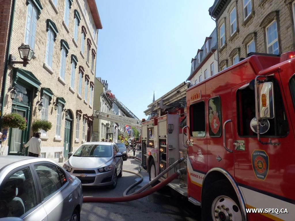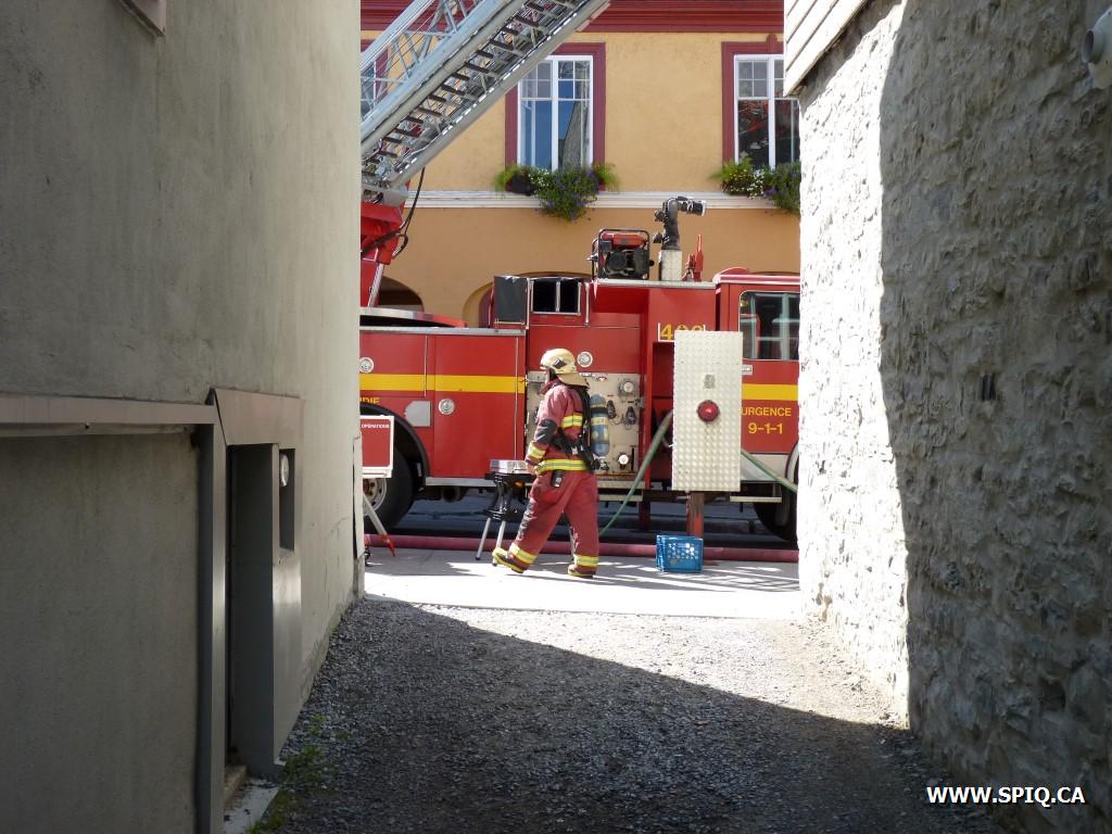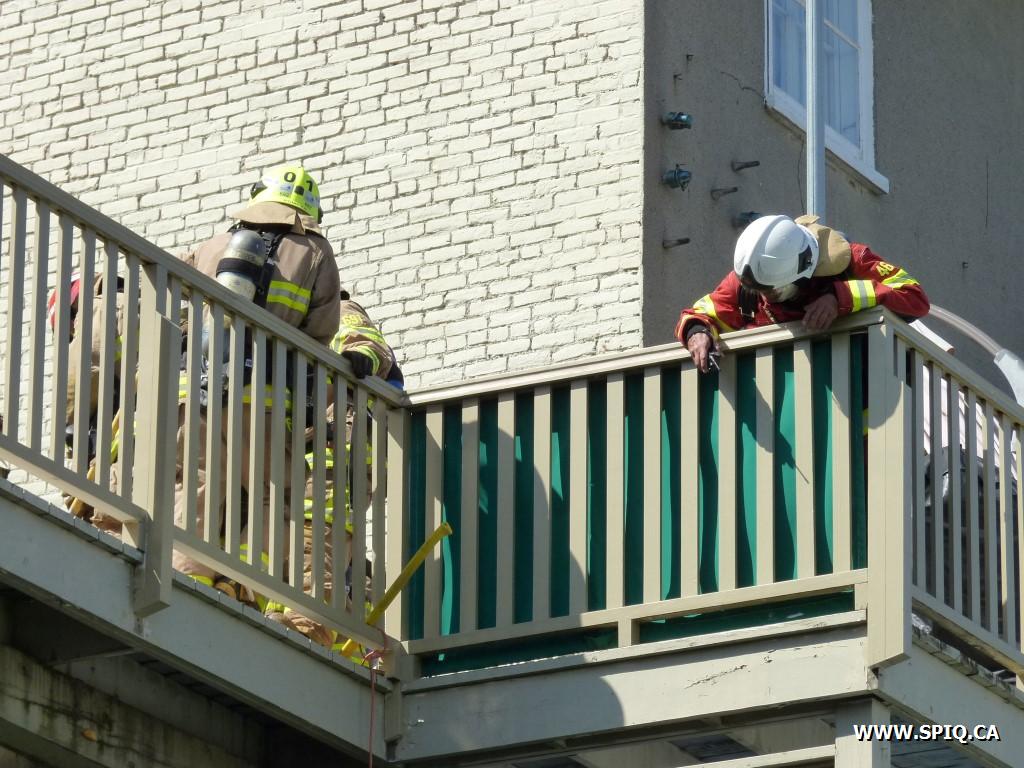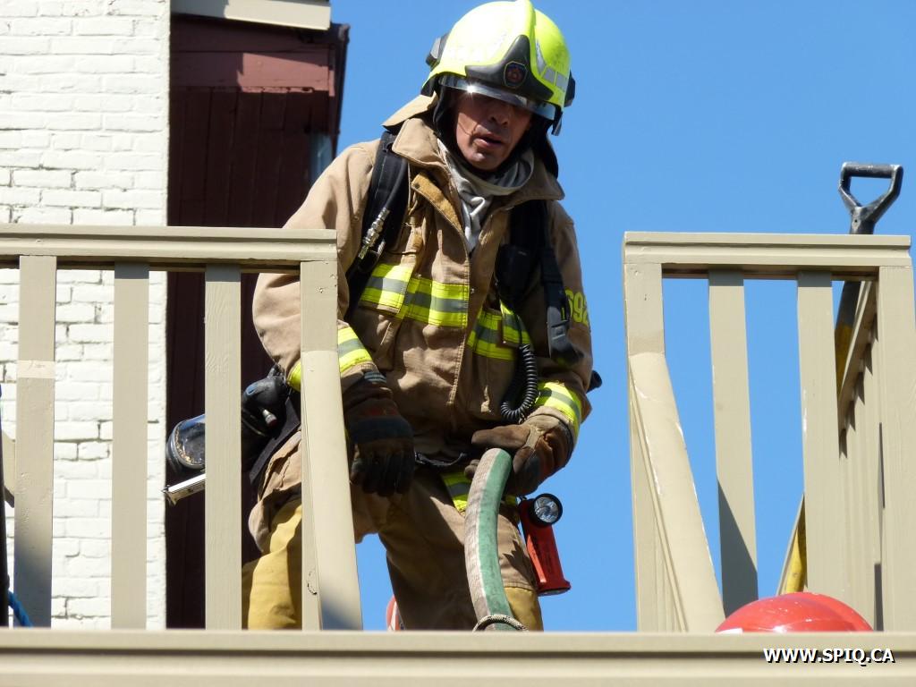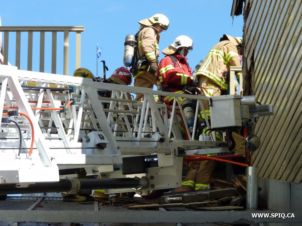 Le 132 confirme l'intervention nécessaire et donne la 2ème alarme deux minutes plus tard. Le 130 à confirmant un feu en progression demande la 3ème alarme 5 minutes après son arrivée et le 709 en COOP, craignant que le feu ne s'attaque à la structure et à l'entretoit.
