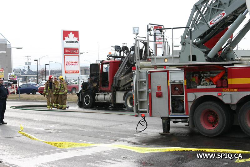 Peu avant 17h00 les pompiers de la caserne 5 ont du intervenir près de l'intersection de la rue du Marais et de l'avenue Godin pour un feu éclaté dans un camion remorque.