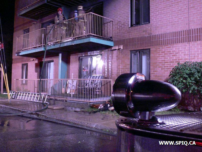 Feu éclaté sur le balcon du 2ième étage. C'est le 1102 qui est arrivé le premier,