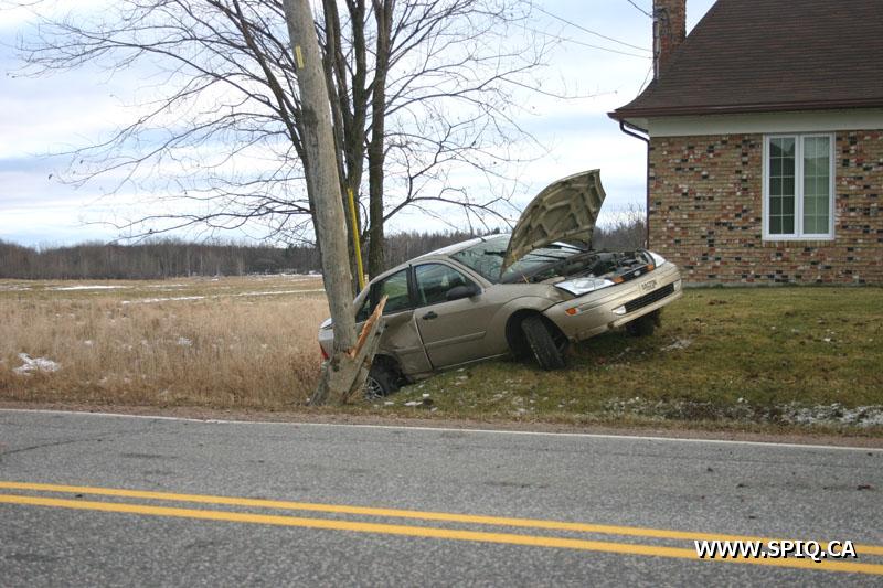 Arrivés sur place, l'équipe du 211 constate qu'un véhicule a fait une sortie de route et a fauché sur son passage un poteau de transport électrique. Le poteau est sectionné à la base et menace de tomber. Les pompiers ont sécurisés la scène en attendant l'arrivée d'Hydro-Québec.