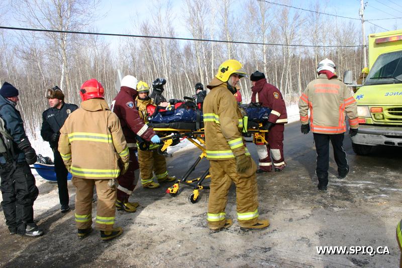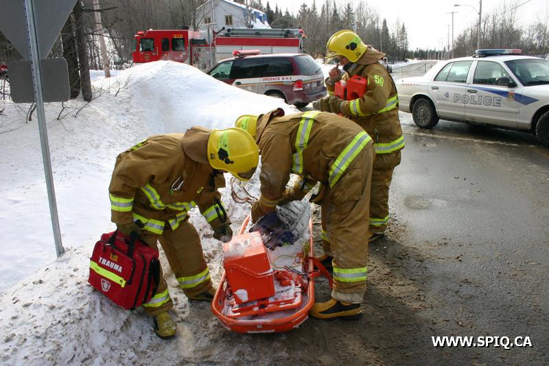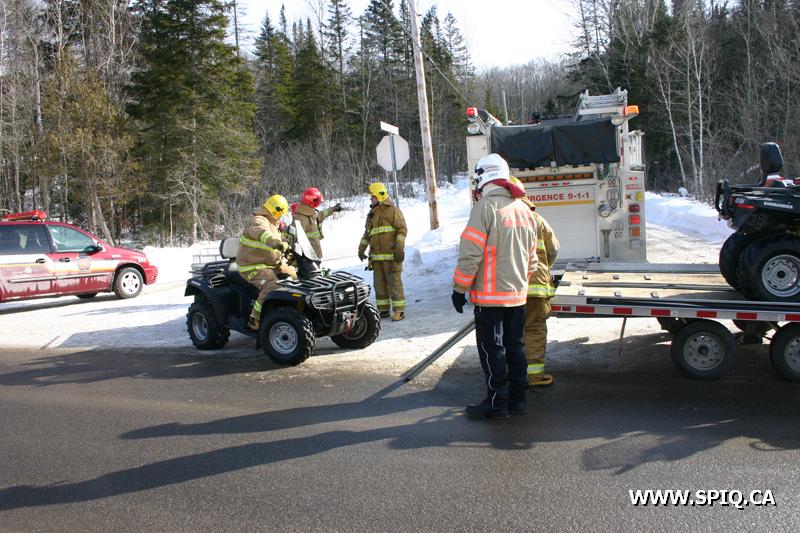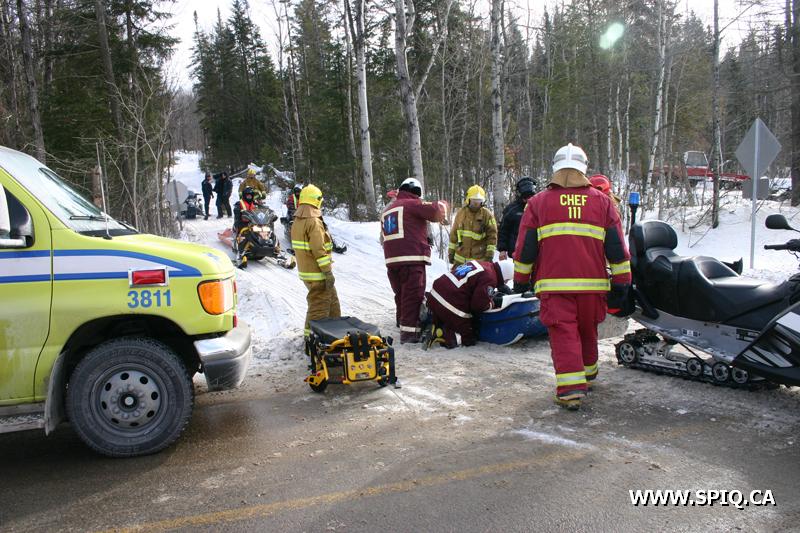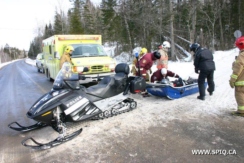Un accident de motoneige a nécessité l'intervention des pompiers des casernes 8 et 12 peu avant midi. L'accident est survenu à environ 4 kilomètres dans la forêt et le seul point d'accès était le sentier de motoneige qui passe à l'intersection des chemins de Bélair et du Lac-Bonhomme.