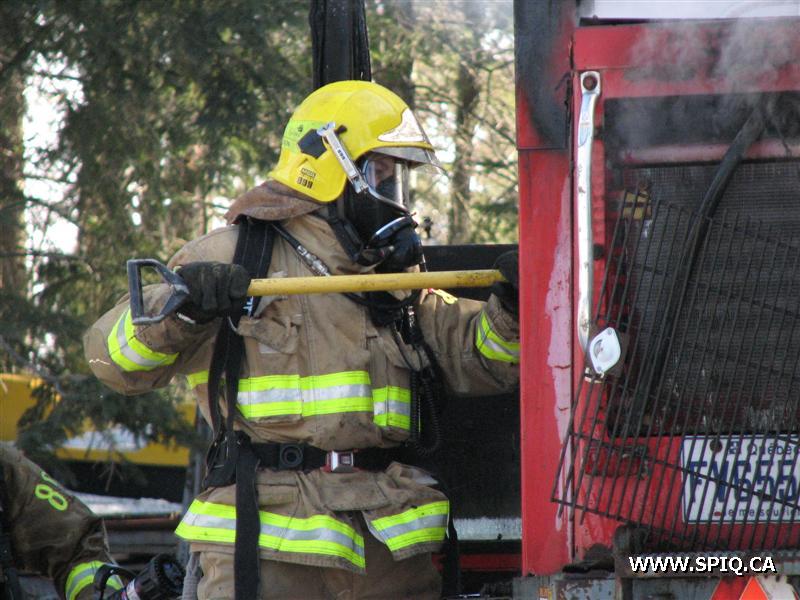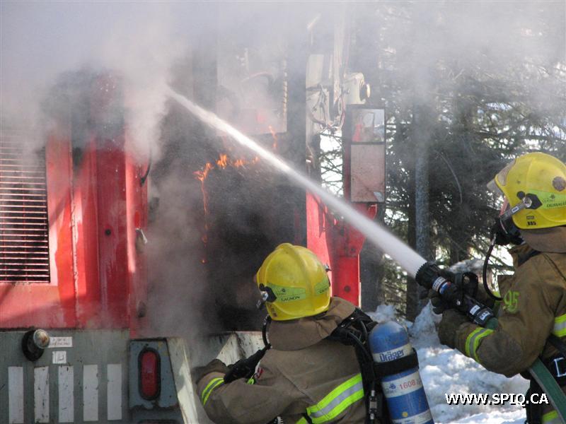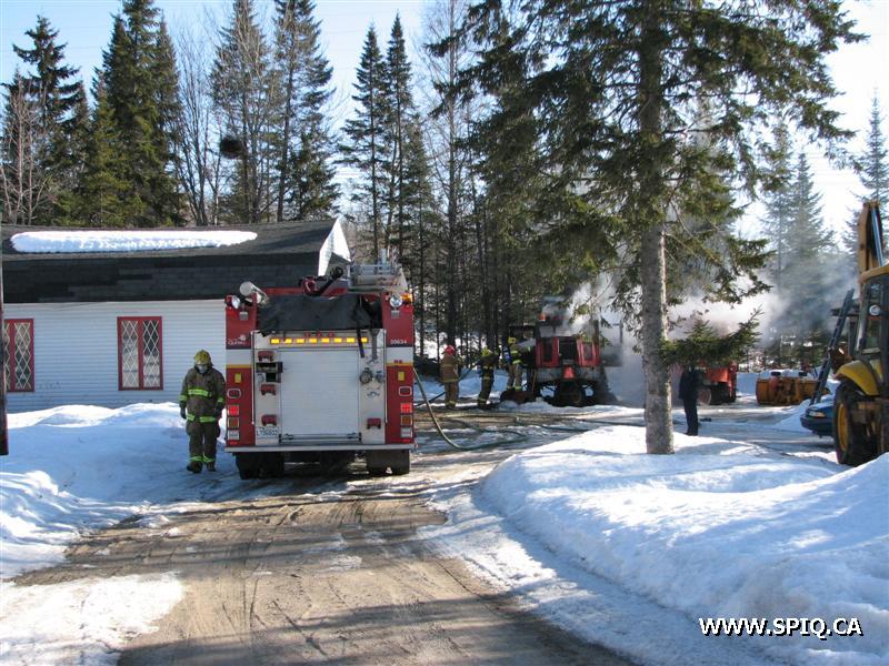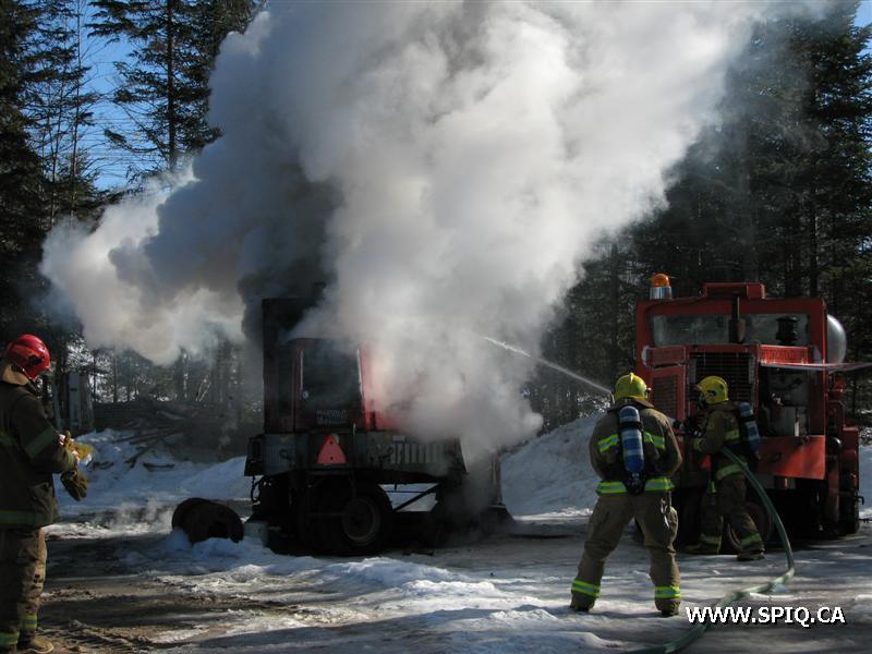 Une 1ère alarme est donnée car la centrale reçoit un appel mentionnant que le feu est éclaté dans un balai mécanique et qu'il y a risque de propagation à un bâtiment. À son arrivée sur les lieux, le 216 mentionne qu'il n'y a aucun risque de propagation. Le 216 et 608 sont restés sur les lieux pour procéder à l'extinction.