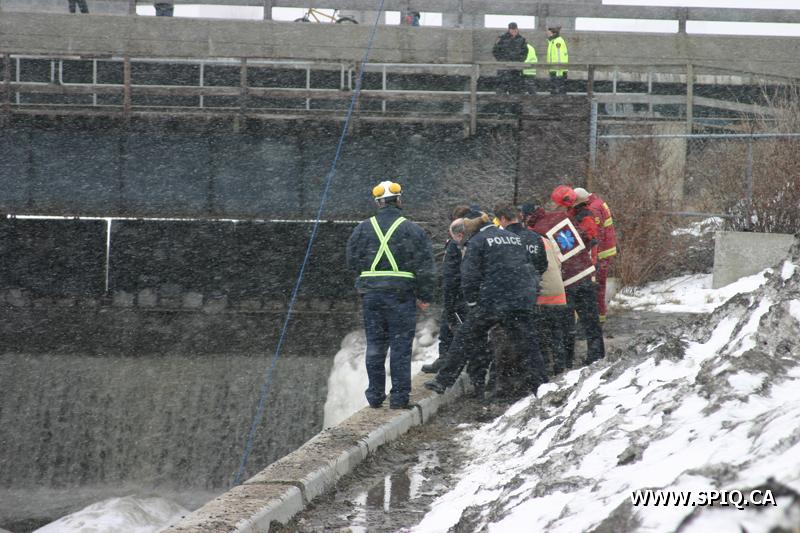 Les équipes nautiques du SPCIQ ont eu a effectuer la récupération du corps d'une personne à l'embouchure de la rivière Saint-Charles tout près du pont Samson en début d'après-midi.