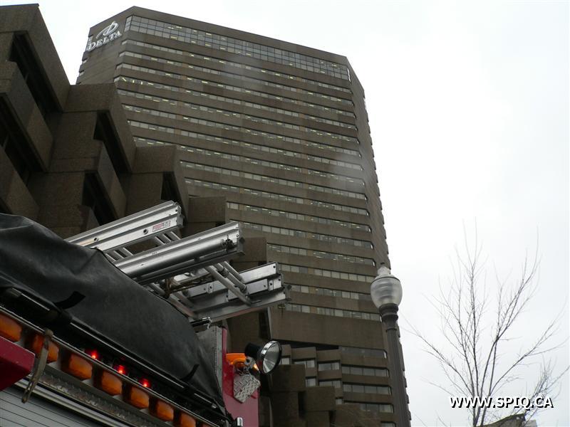 Une vitrine du dernier étage de l'Hôtel Delta menaçait